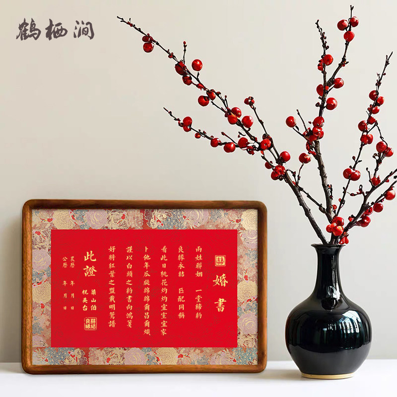 鹤栖涧a4a3空白自写婚书锦鲤红色宣纸卡纸手写订婚书相框摆台定制