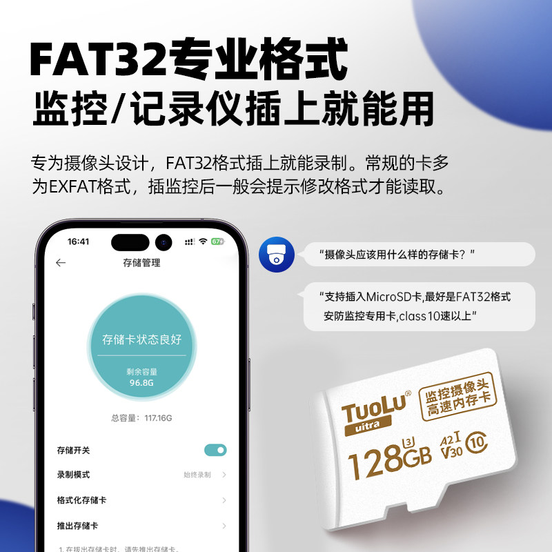 高速内存卡128g监控摄像头行车记录仪tf存储卡汽车专用储存卡sd卡