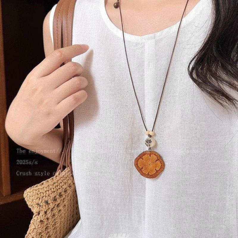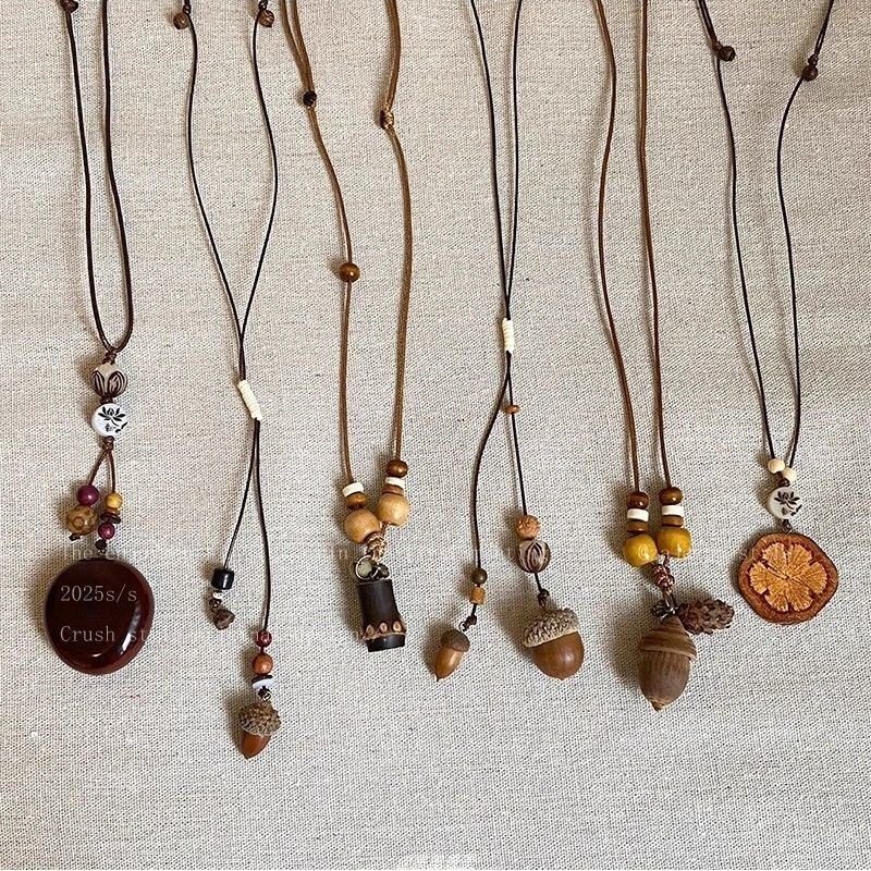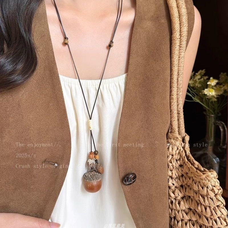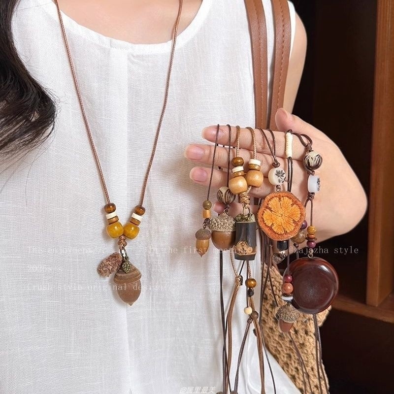 复古森系文艺风长款木质橡果项链女小众设计感禅意民族风时尚配饰