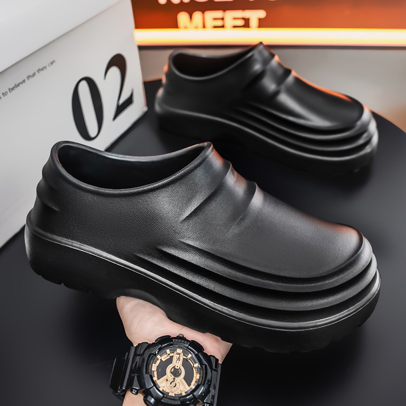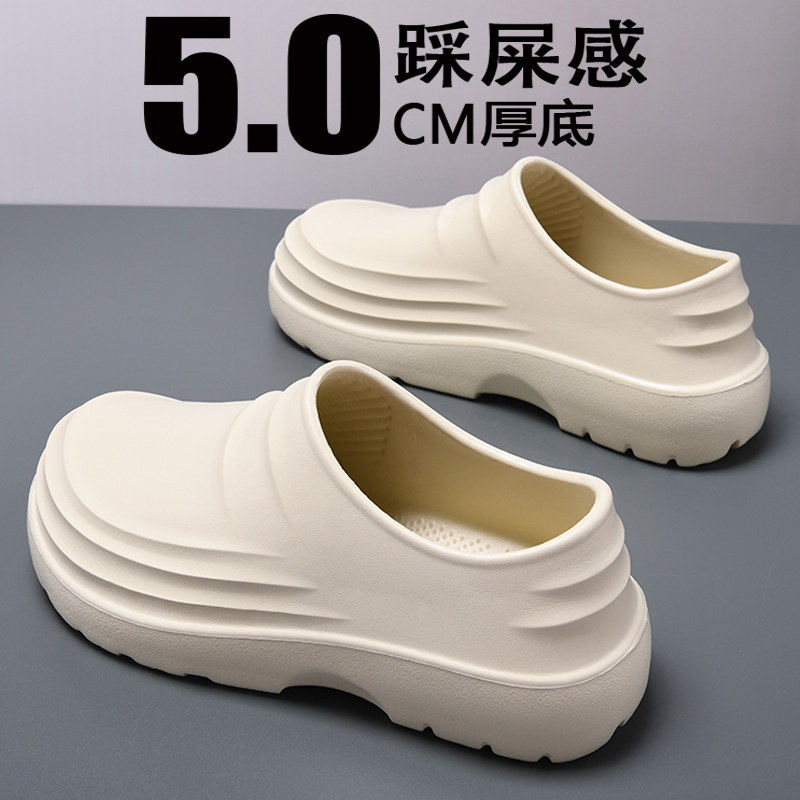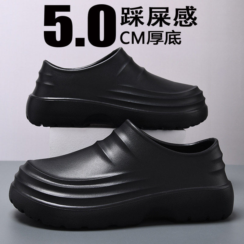 专用厨师鞋黑色包头拖鞋男夏季2026新款厚底开车防滑情侣防水防油