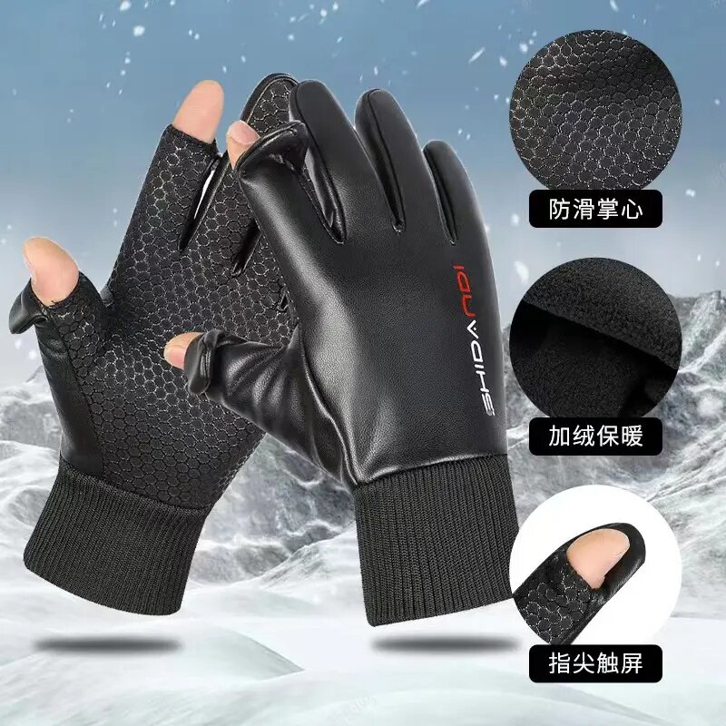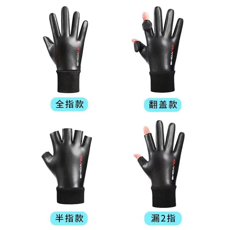 秋冬防泼水加绒保暖翻盖露二指全指半指男士手套防滑户外骑行外卖