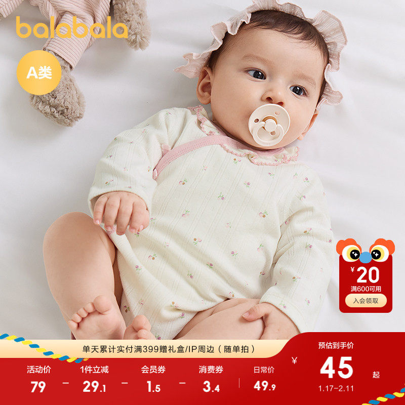 巴拉巴拉童装新生婴儿连体衣三角衣宝宝衣服2025新款女童甜美洋气