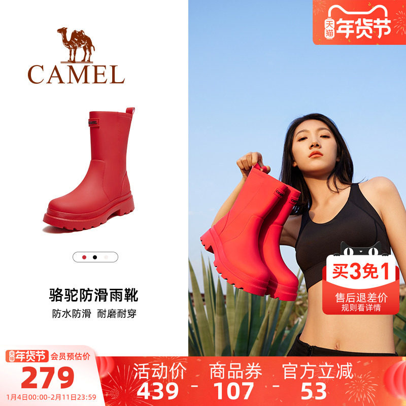 骆驼女鞋雨靴经典英伦防水防滑骑士靴户外休闲女涉水徒步露营雨鞋