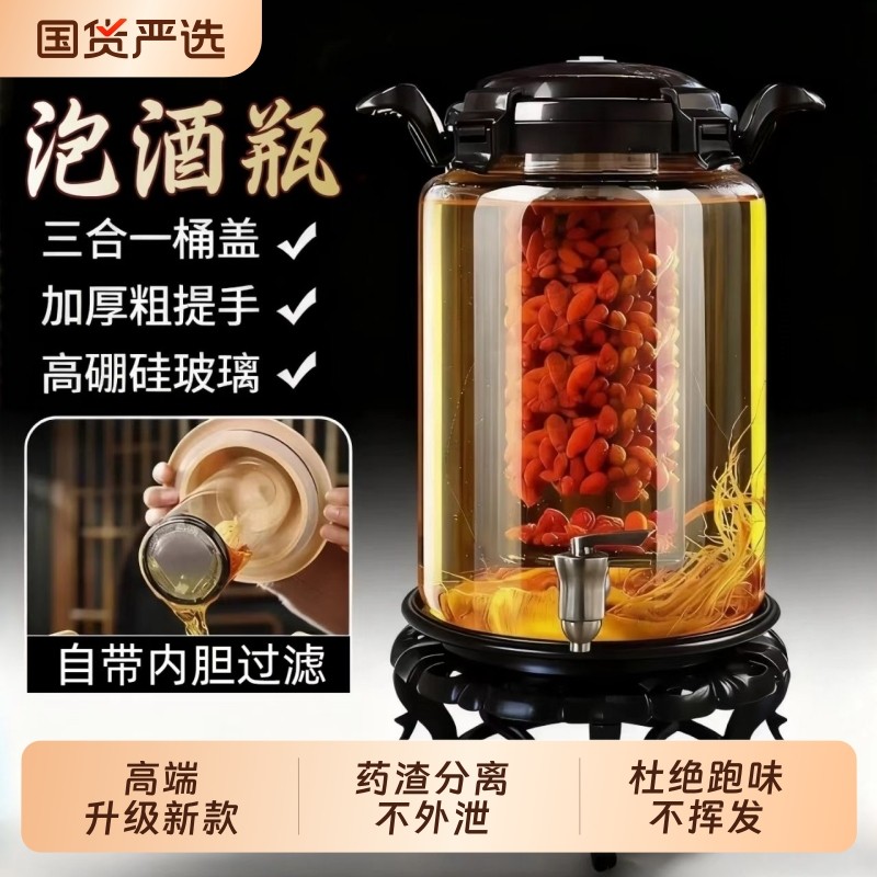 泡酒专用酒瓶人参泡酒玻璃瓶加厚带龙头家用高档密封泡酒罐大容量