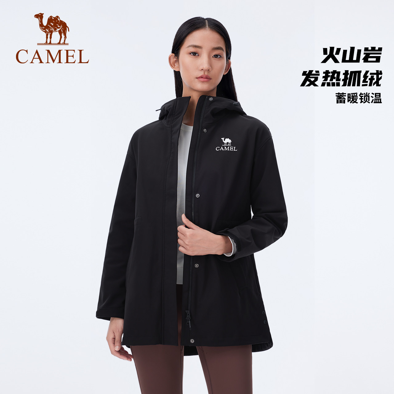 【火山岩】骆驼户外软壳衣女连帽中长款风衣速热防泼水防风外套