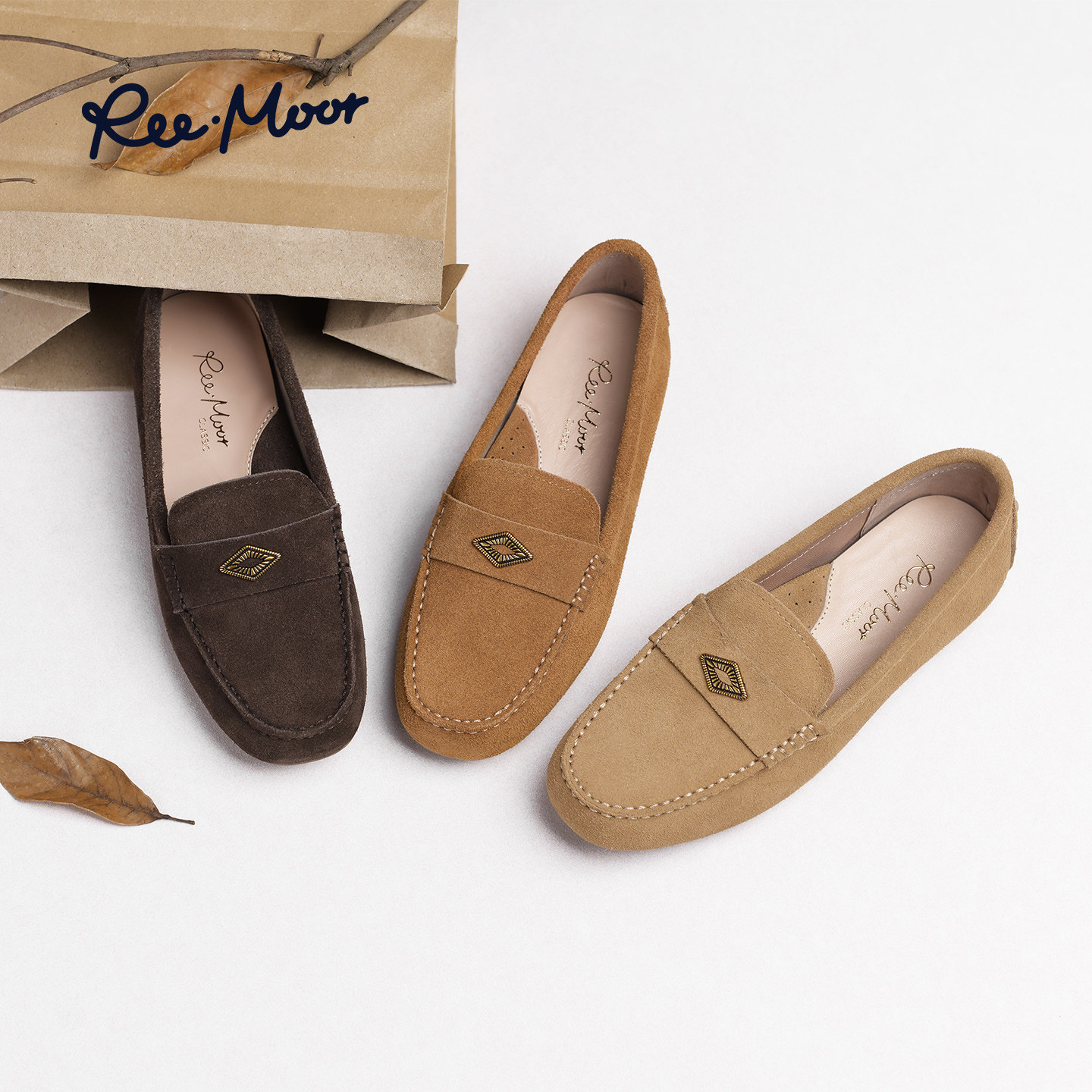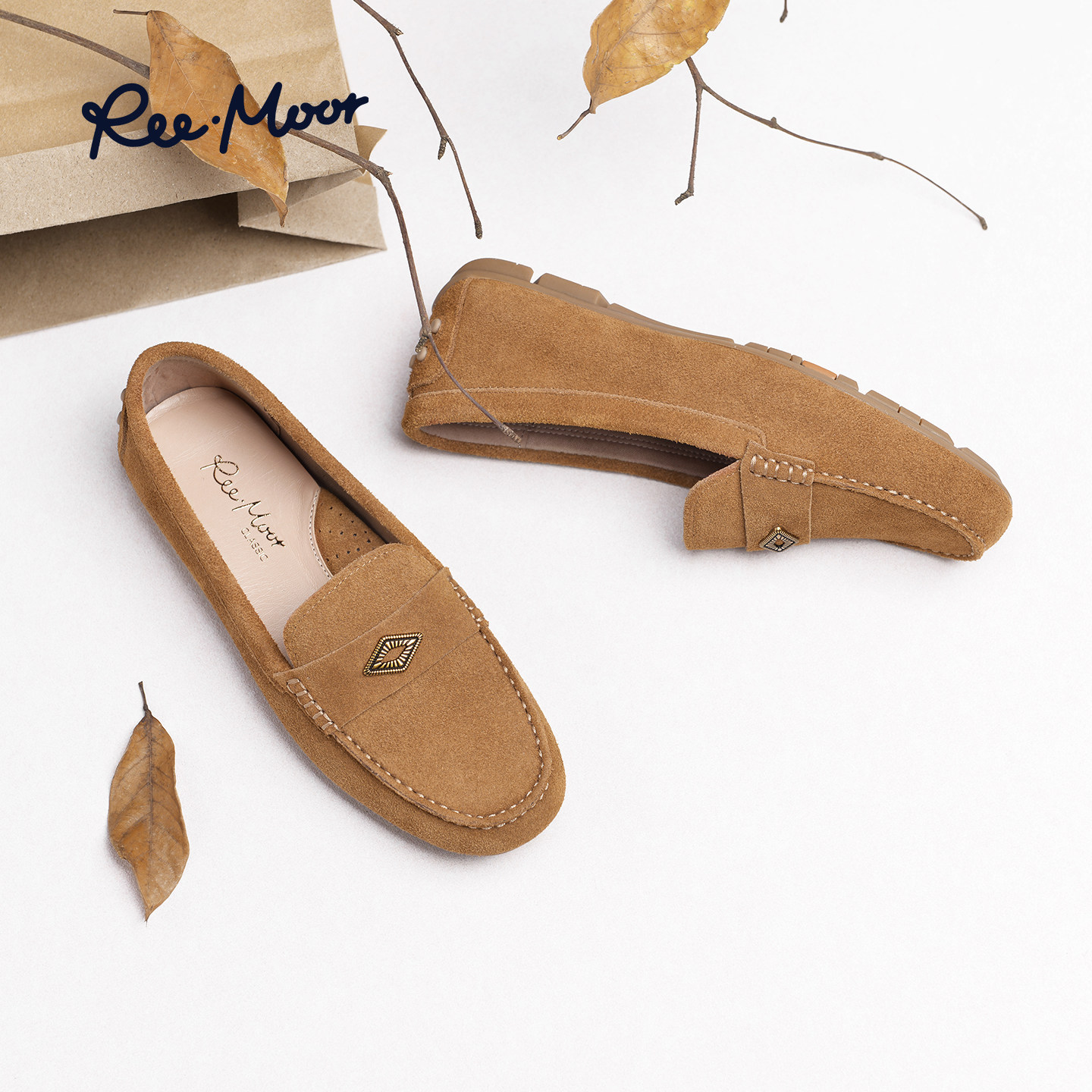 REEMOOR睿慕2025秋季新款复古英伦风圆头平底一脚蹬乐福鞋女鞋