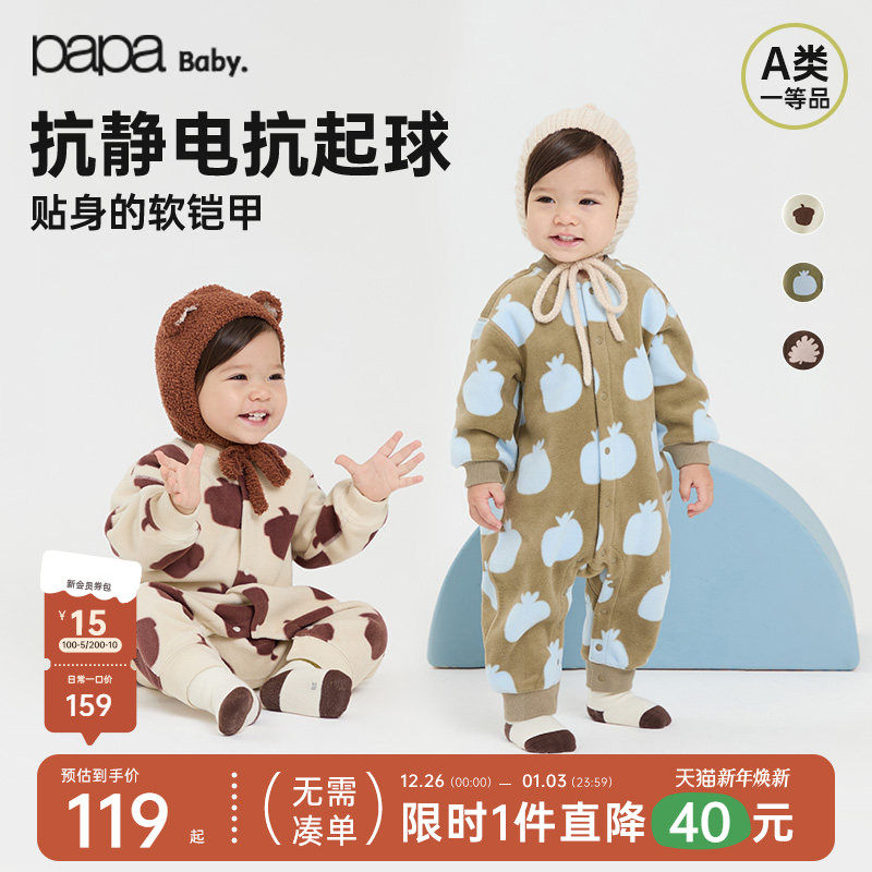 papa爬爬秋季新款男女宝宝连体衣婴儿衣服摇粒绒长袖爬服外出保暖