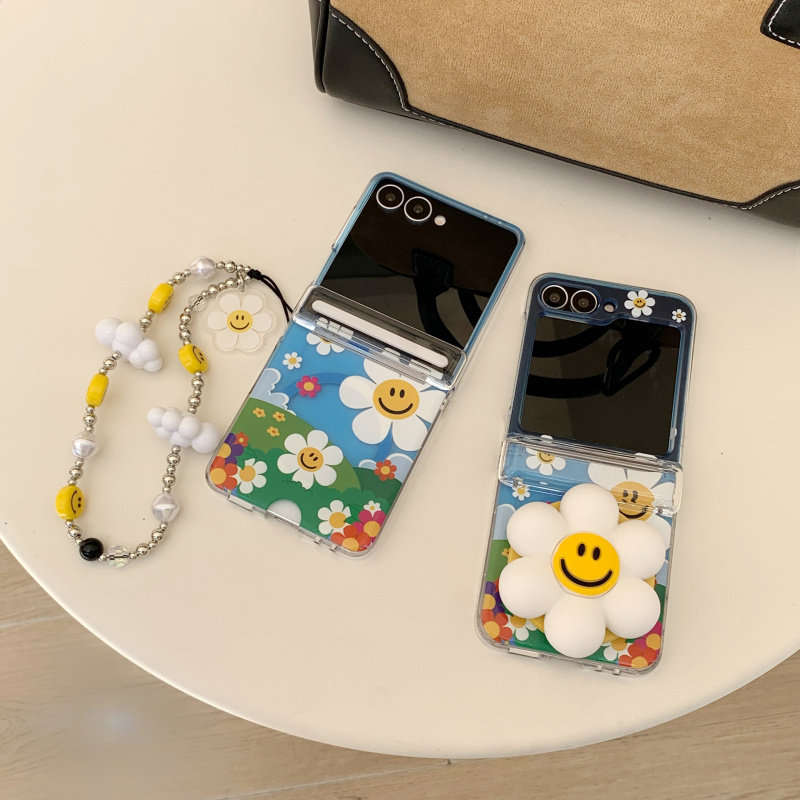ins韩系简约笑脸花朵适用三星Zflip7手机壳创意磁吸插卡zflip6折叠屏zflip5防摔w23flip手链zflip4保护套女款