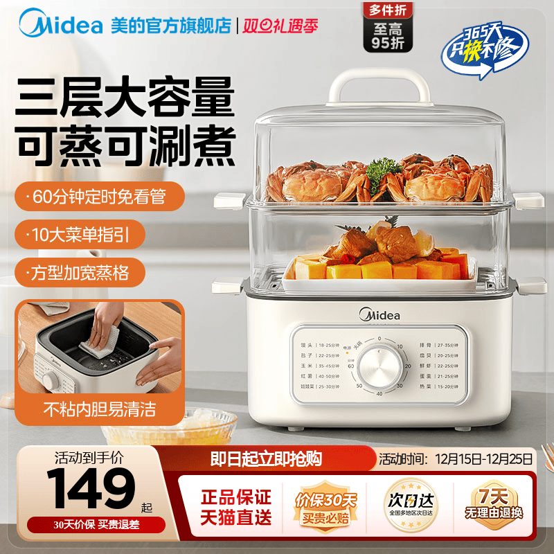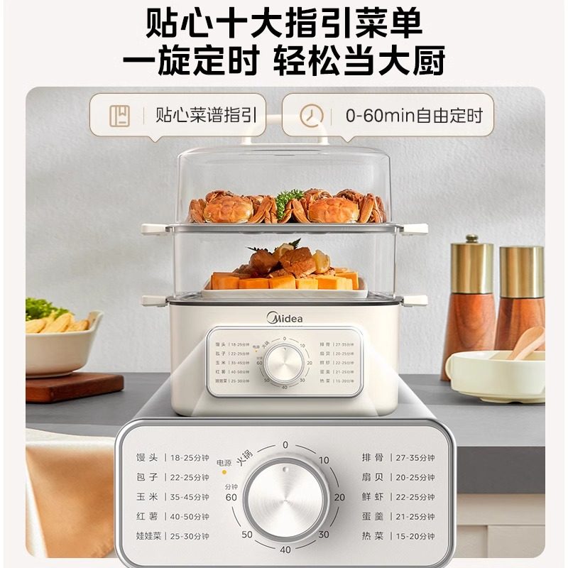 美的电蒸锅多功能家用蒸煮炖一体锅三层蒸箱蒸包子神器小型电蒸笼