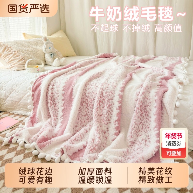A类牛奶绒毛毯冬季盖毯可机洗单人宿舍毯披肩午睡毯双面绒床单厚