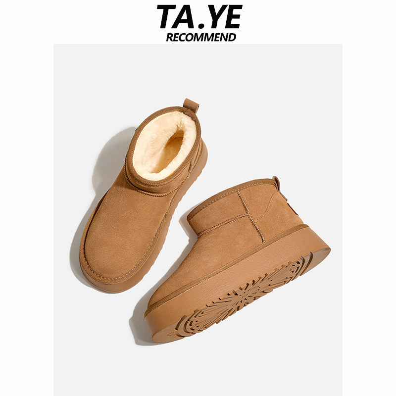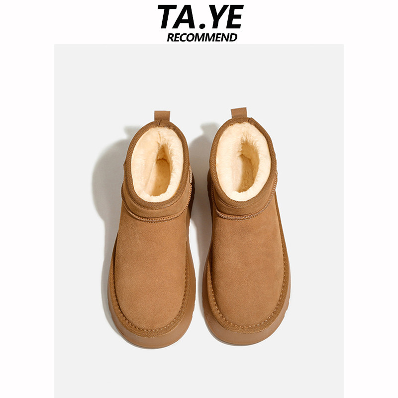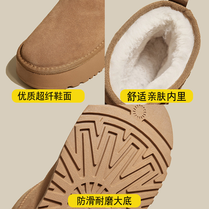 miu家厚底雪地靴女冬季真皮短靴羊毛侧拉链增高厚底加绒毛毛棉鞋