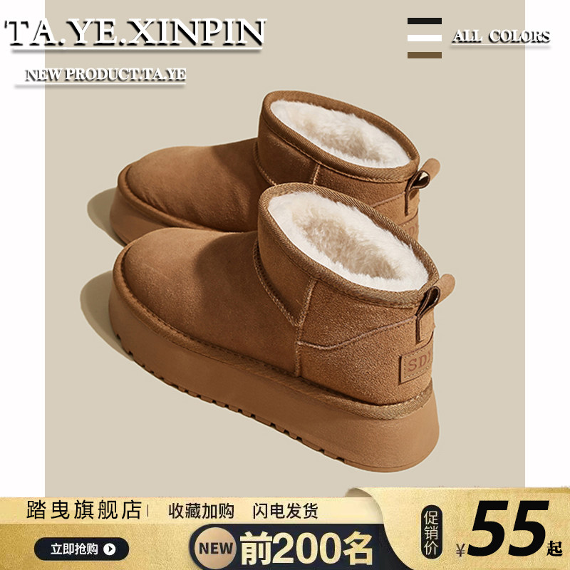 油叽叽~真皮羊毛雪地靴女冬季加绒加厚保暖棉靴厚底增高短筒靴子