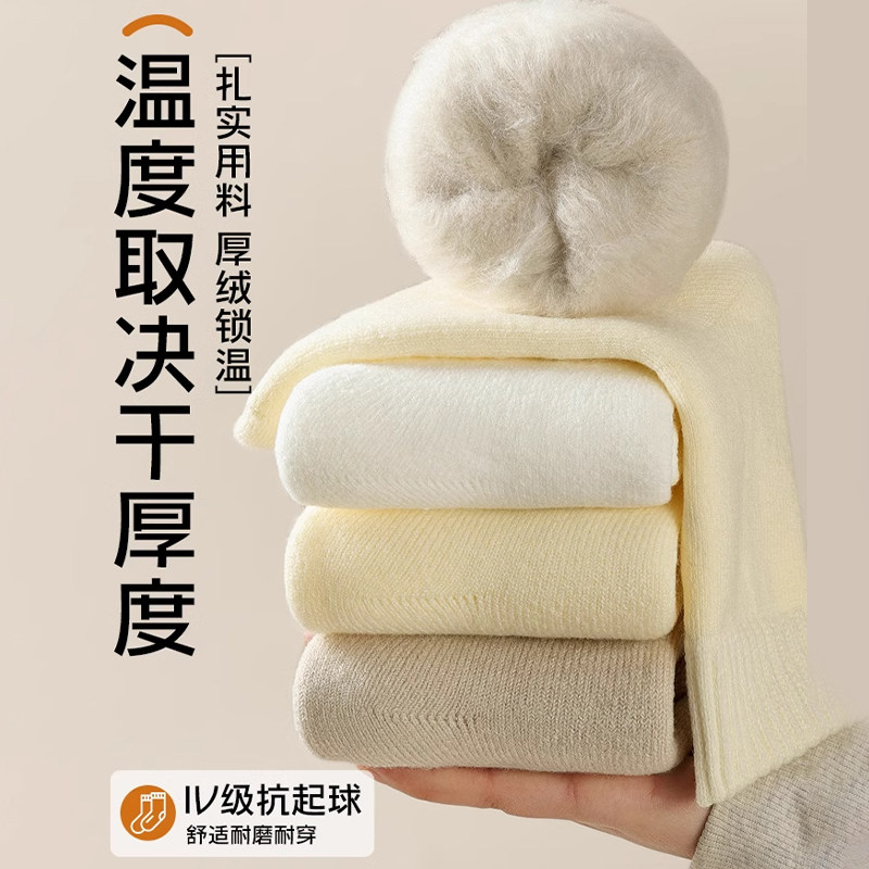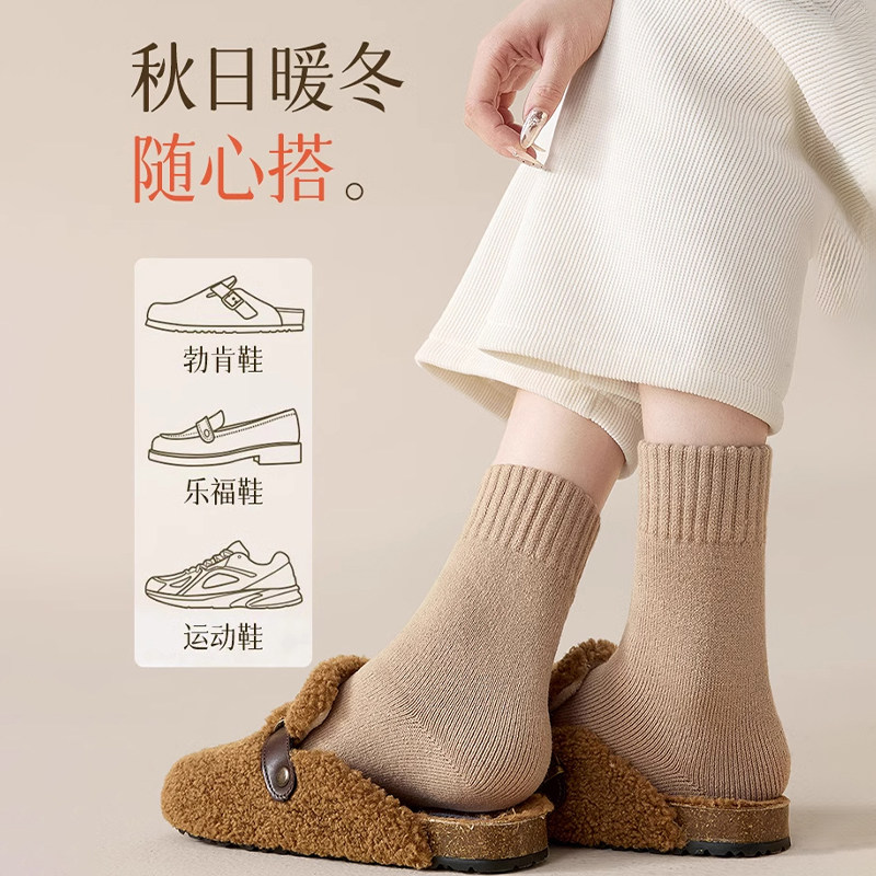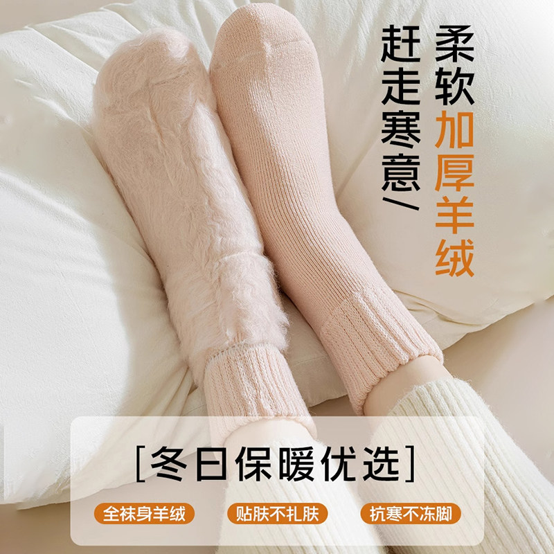 袜子女款秋冬季加绒加厚保暖羊绒中筒袜睡眠地板袜冬配雪地靴长袜
