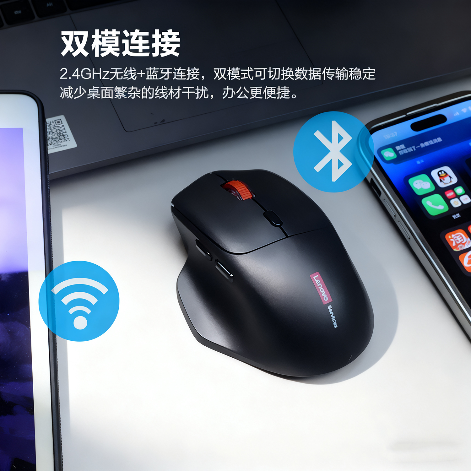 联想小新蓝牙无线静音轻音充电双模鼠标 办公学习笔记本电脑鼠标