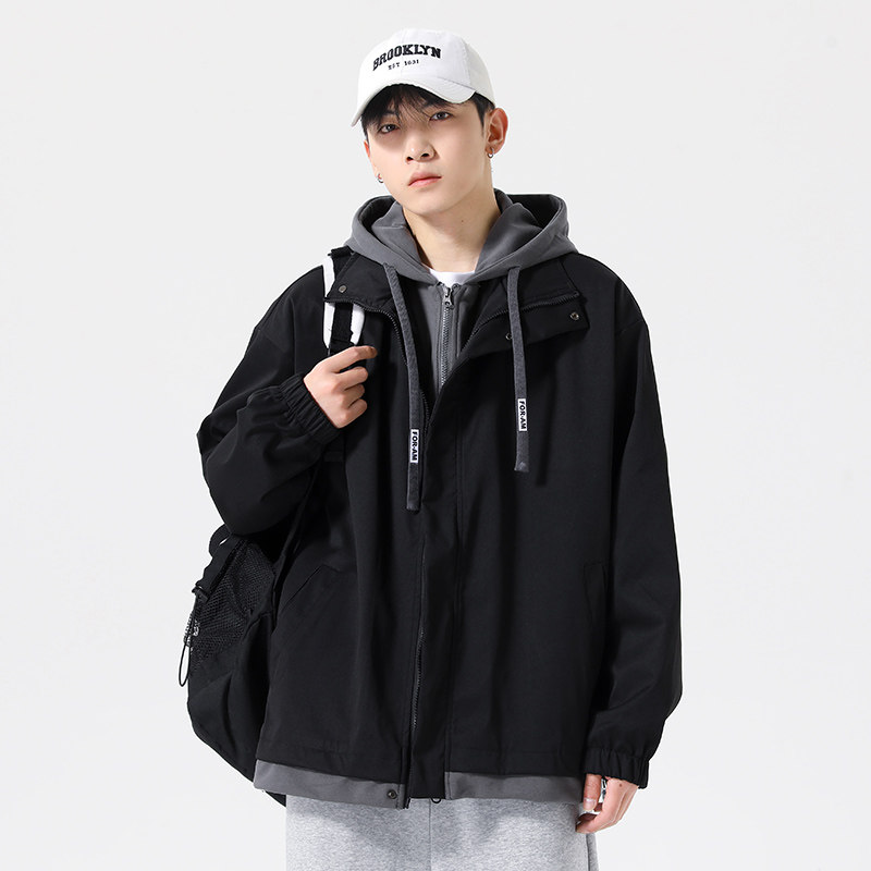 罗蒙夹克外套男士商务休闲秋季2025年新款可拆卸帽宽松连帽秋款
