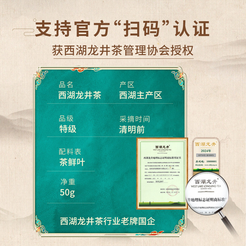 2025新茶西湖牌明前特级西湖龙井茶叶绿茶茶叶礼盒节日送长辈亲友