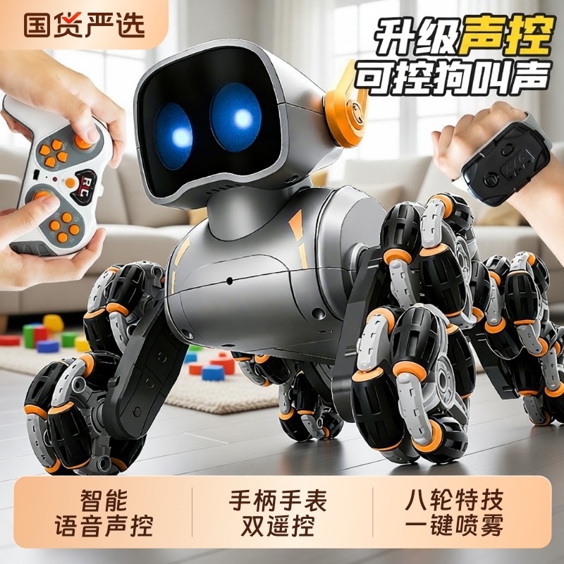 机器狗电动遥控玩具儿童男人工智能机械狗2025新款电子狗八轮特技