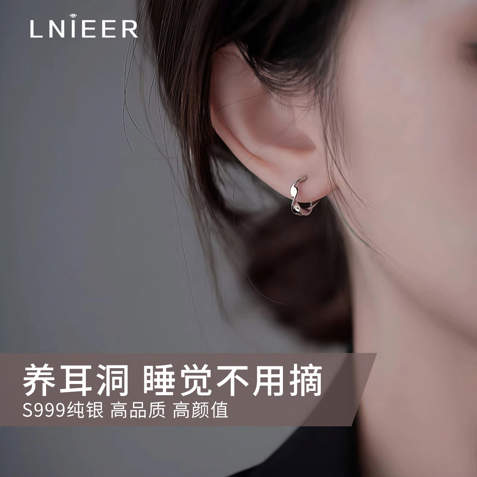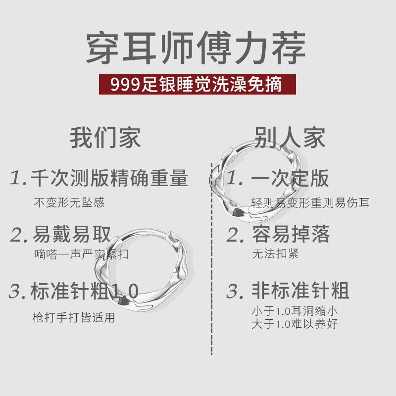 S999纯银莫比乌斯耳环轻奢高级感养耳洞耳钉素圈爆款睡觉免摘耳饰