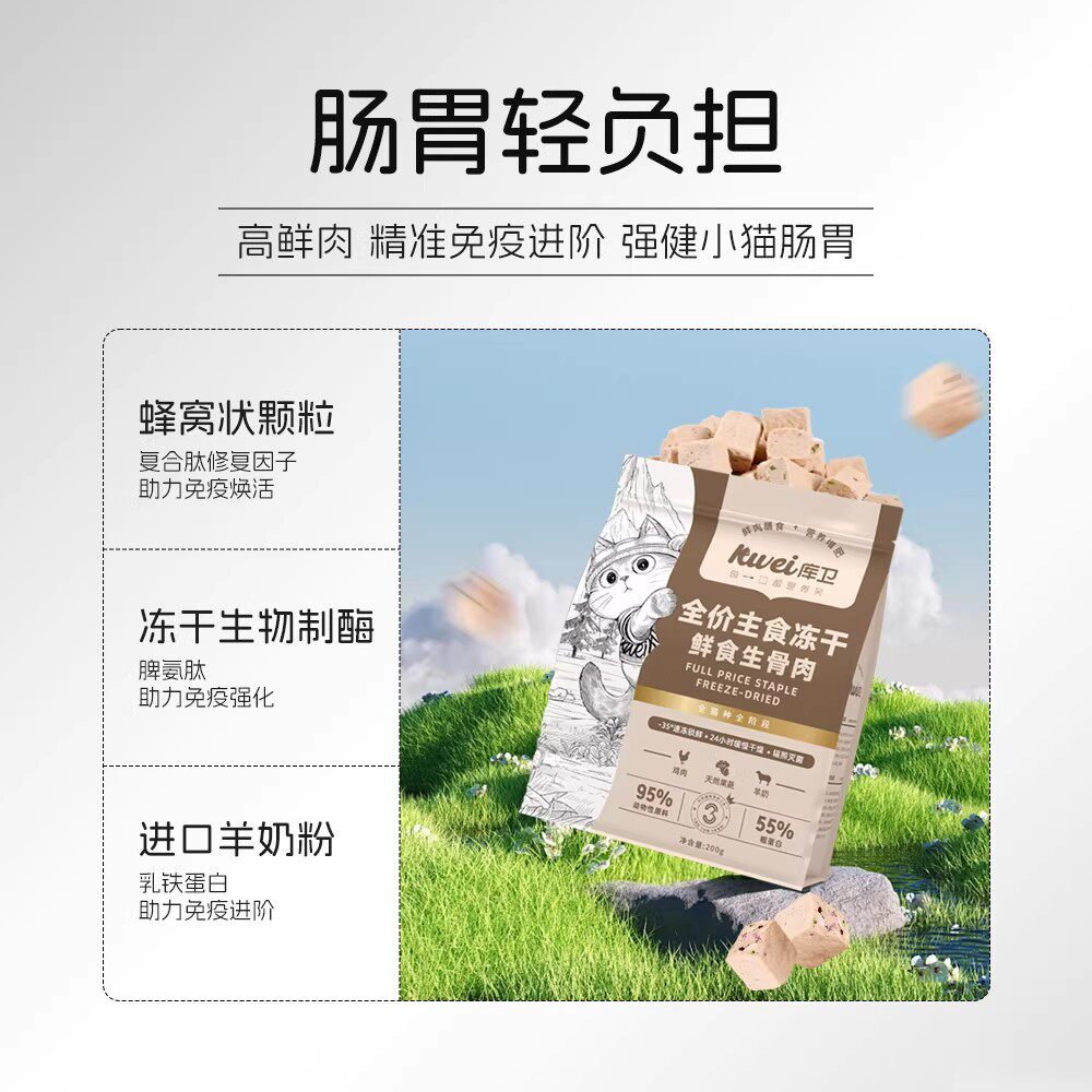 库卫全价主食生骨肉冻干猫粮鸡肉鸭肉成猫幼猫通用鲜肉粮冻干猫粮