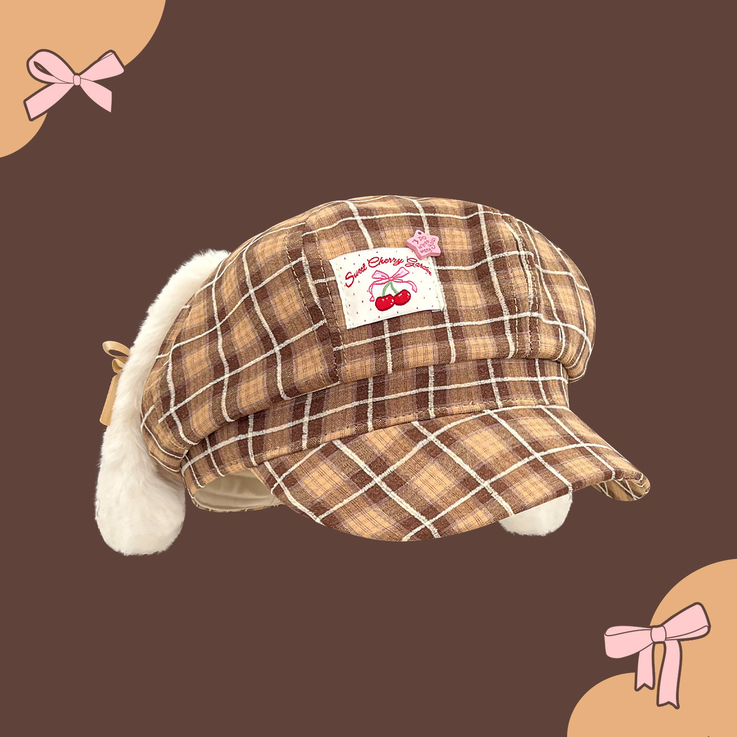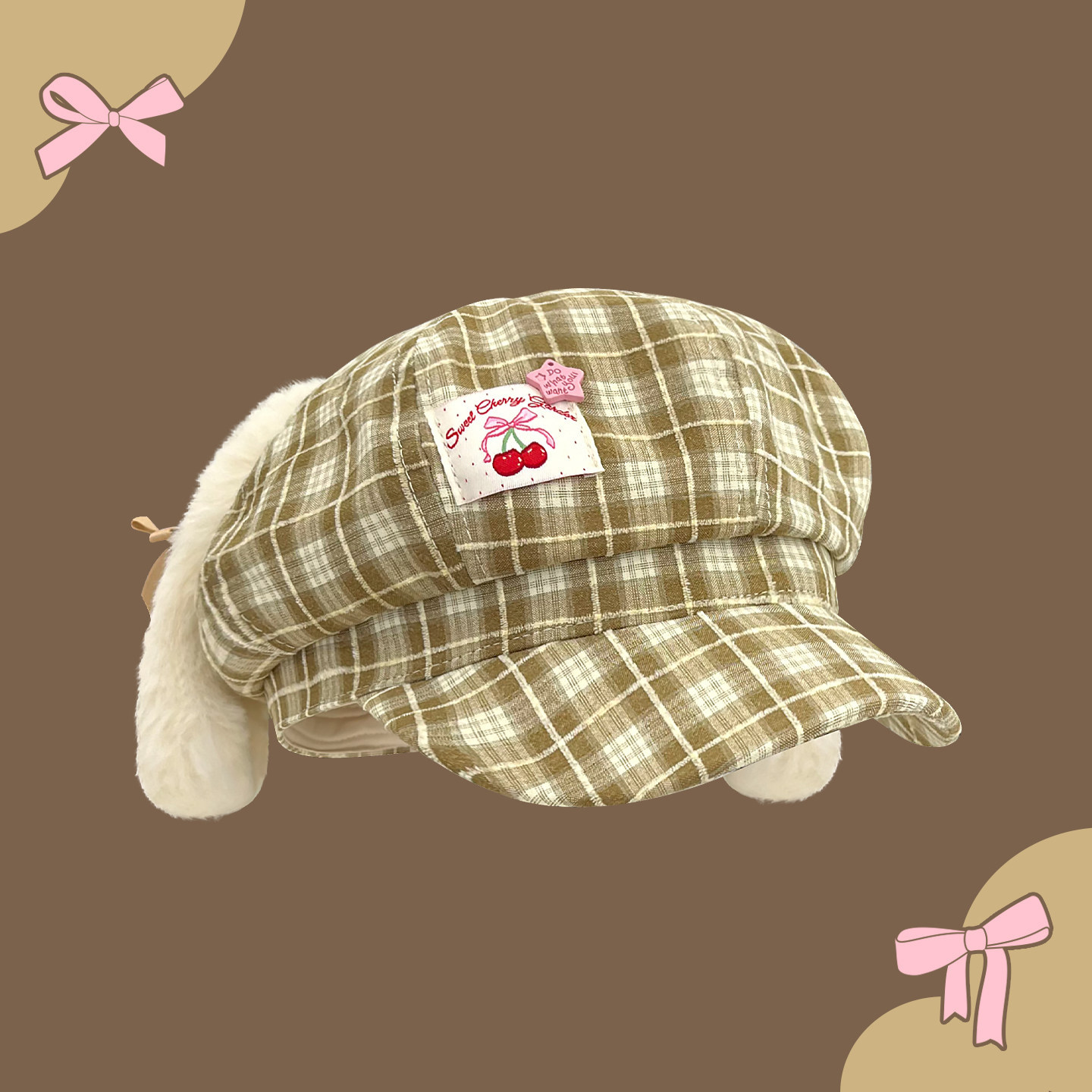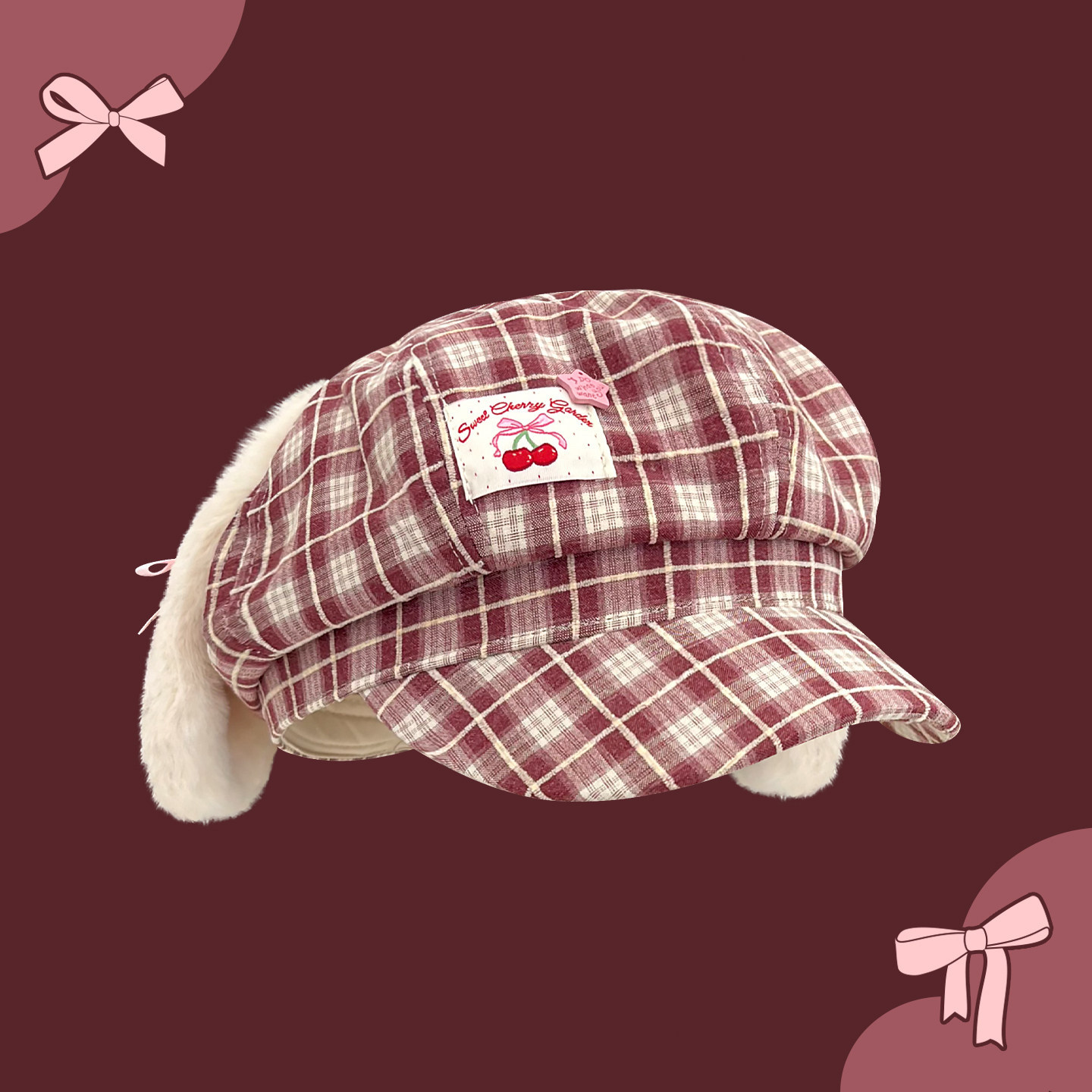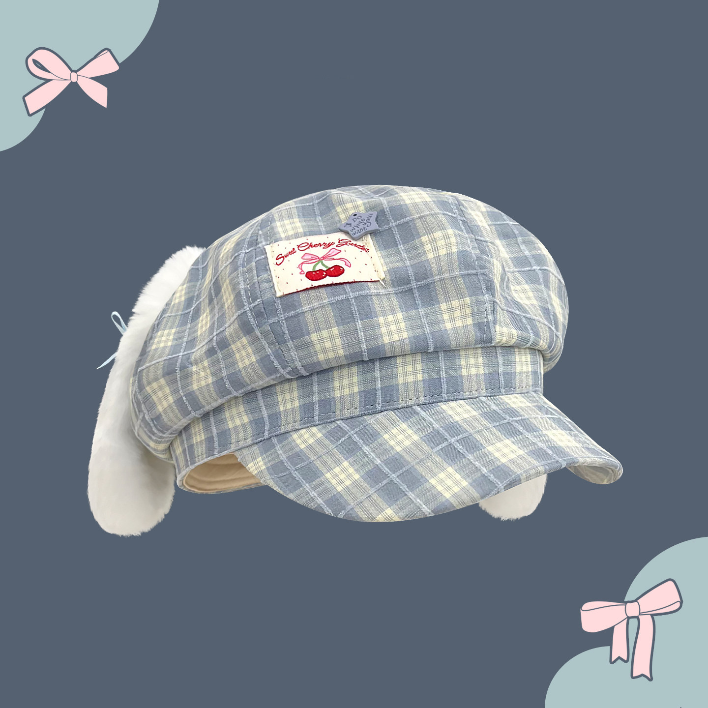 Classy key新加坡设计师联名款可爱耳朵格纹贝雷帽子显脸小八角帽