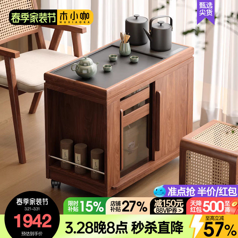木小咖 木作实木可移动茶桌客厅茶水柜带煮茶小户型阳台茶台茶几