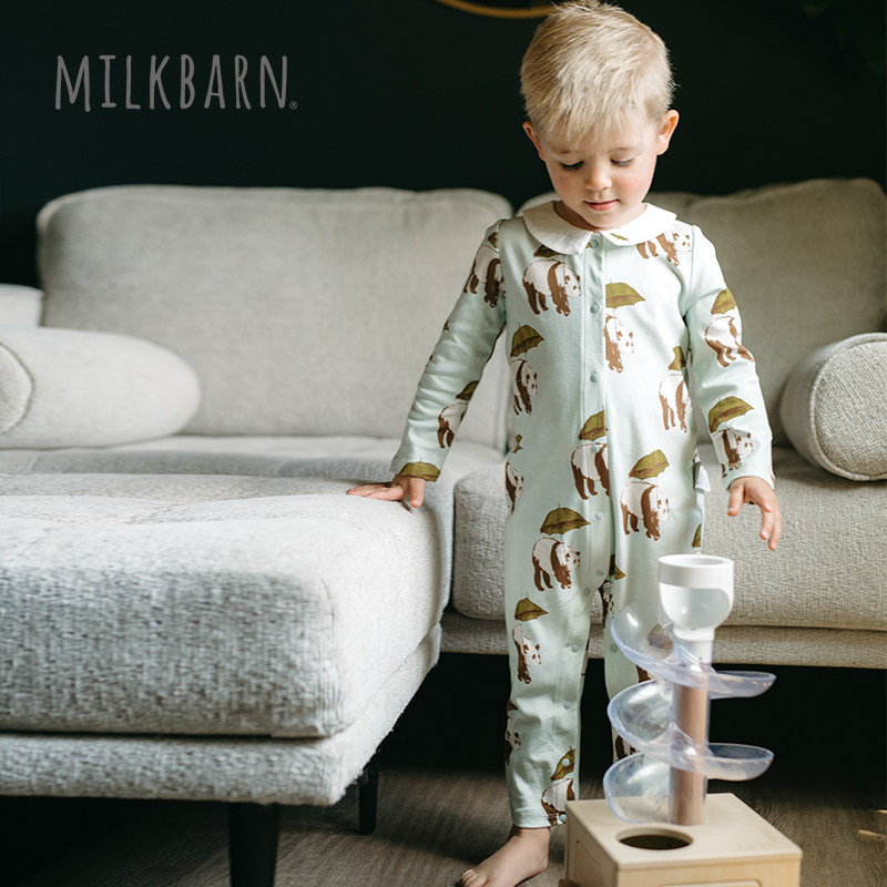 Milkbarn秋季婴幼儿长袖长裤纯棉连体衣宝宝可爱哈衣爬服外出服