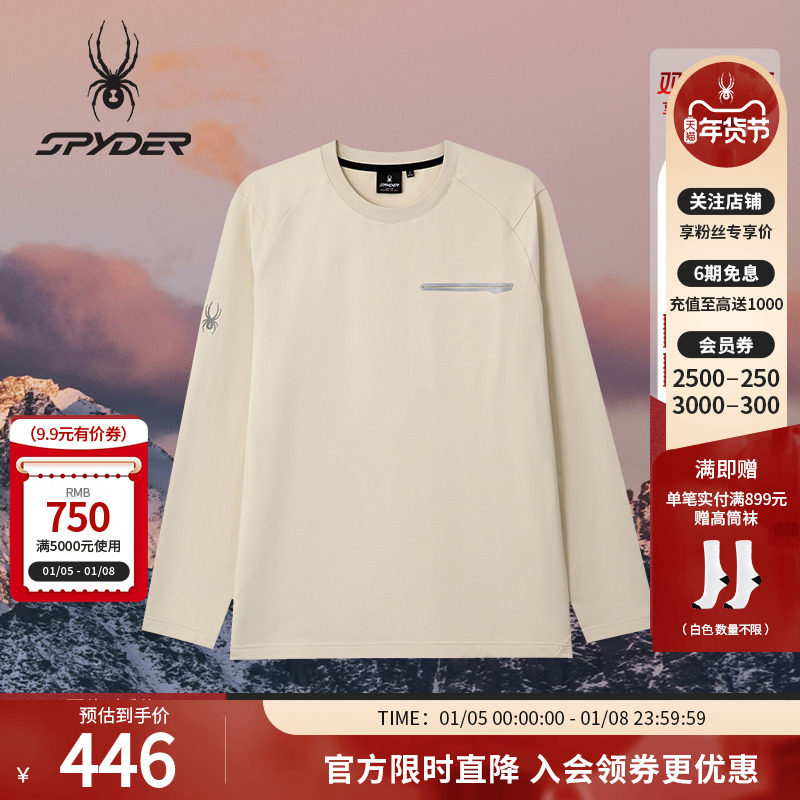 SPYDER蜘蛛秋冬男子华夫格面料休闲运动罗纹圆领长袖T恤25MF405M