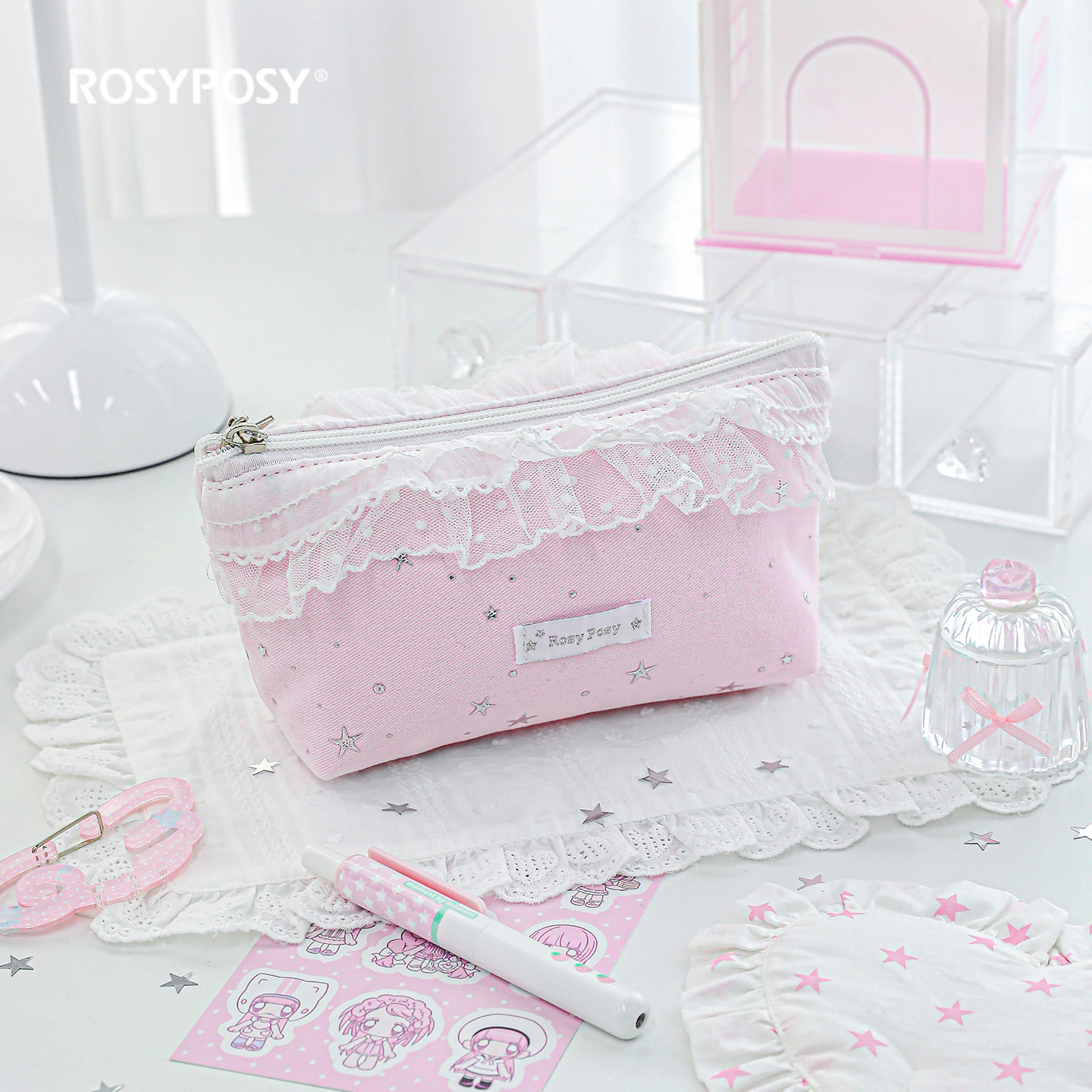 「粉色来了!化妆包&笔袋」ROSYPOSY柔设韩女星星蕾丝ins收纳包