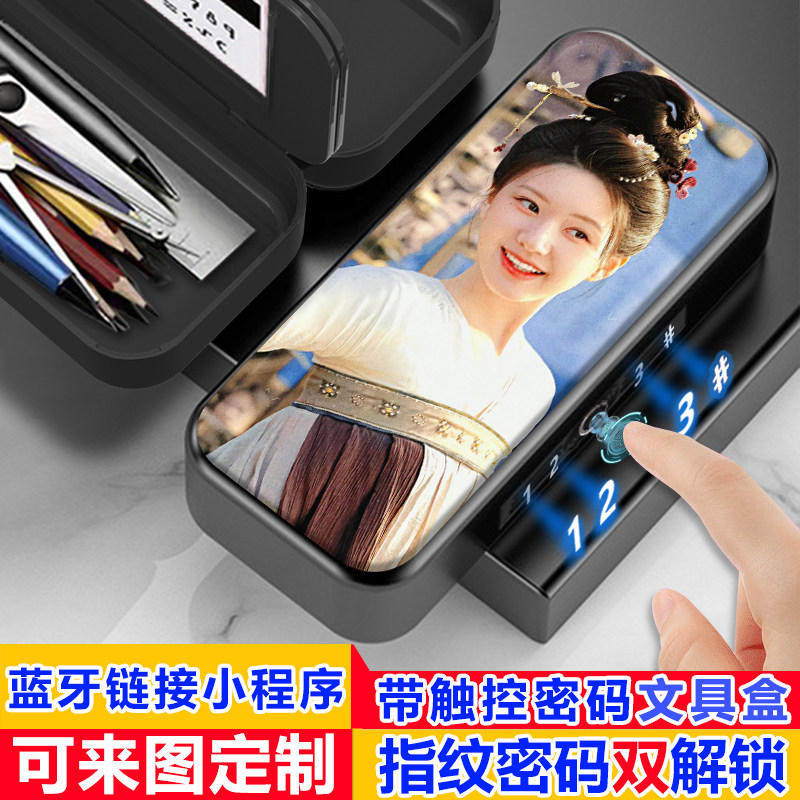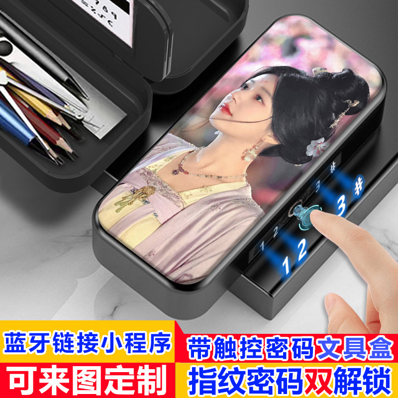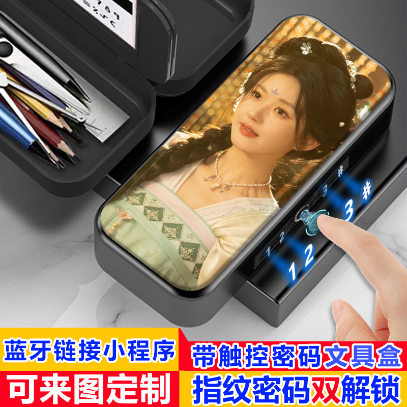 珠帘玉幕赵露思指纹密码双解锁文具盒密码锁多功能铅笔盒女大容量
