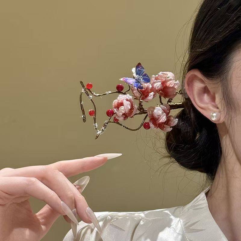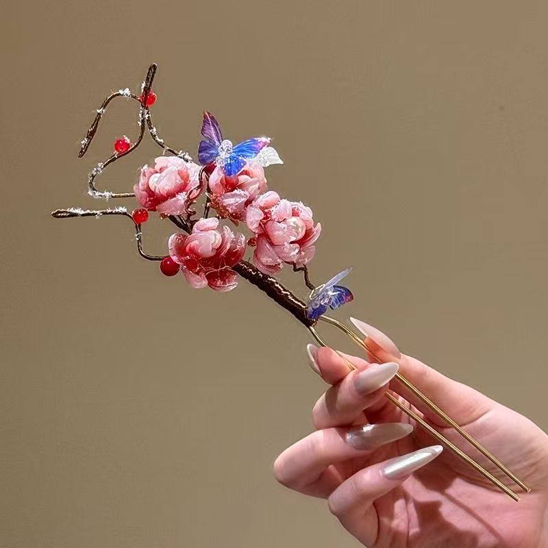 蝶悦雪梅~落雪琉璃梅花发钗古风腊梅配饰雪中梅花缠枝汉服发饰