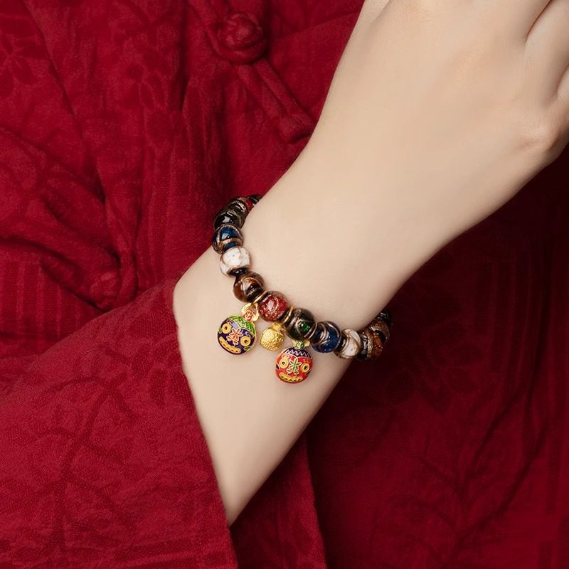 北京香灰琉璃手串招财送男女朋友本命年吉祥物吞金兽一家三口手链