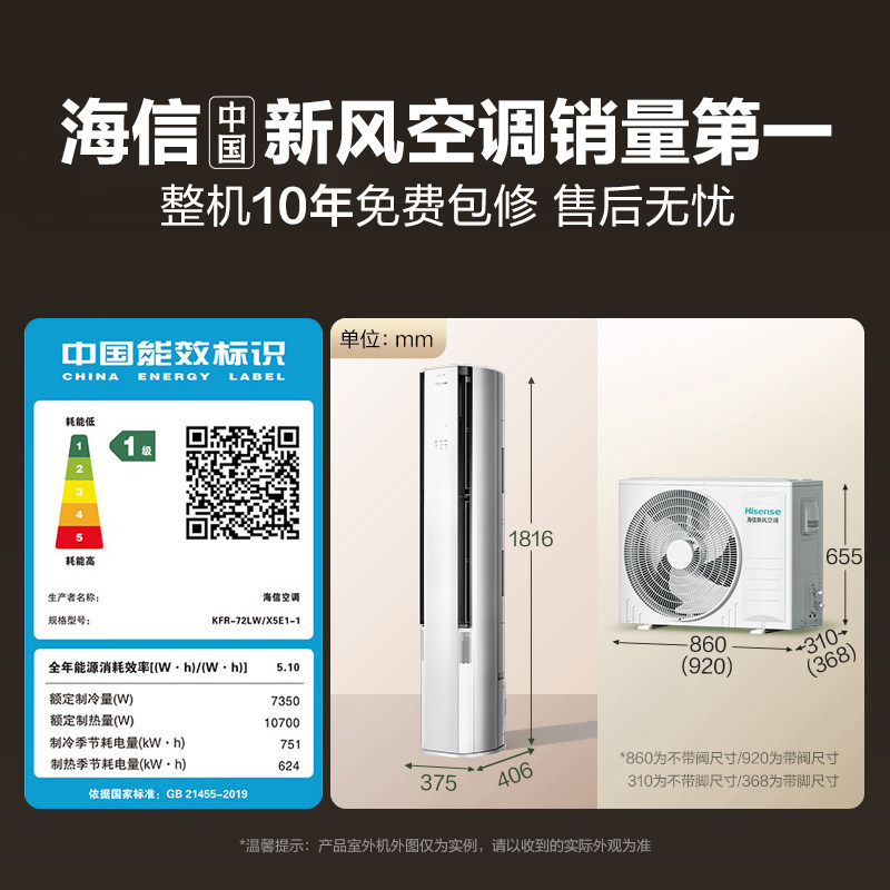 新品海信璀璨新风空调X5大3匹一级能效柜机以旧换新世界杯定制