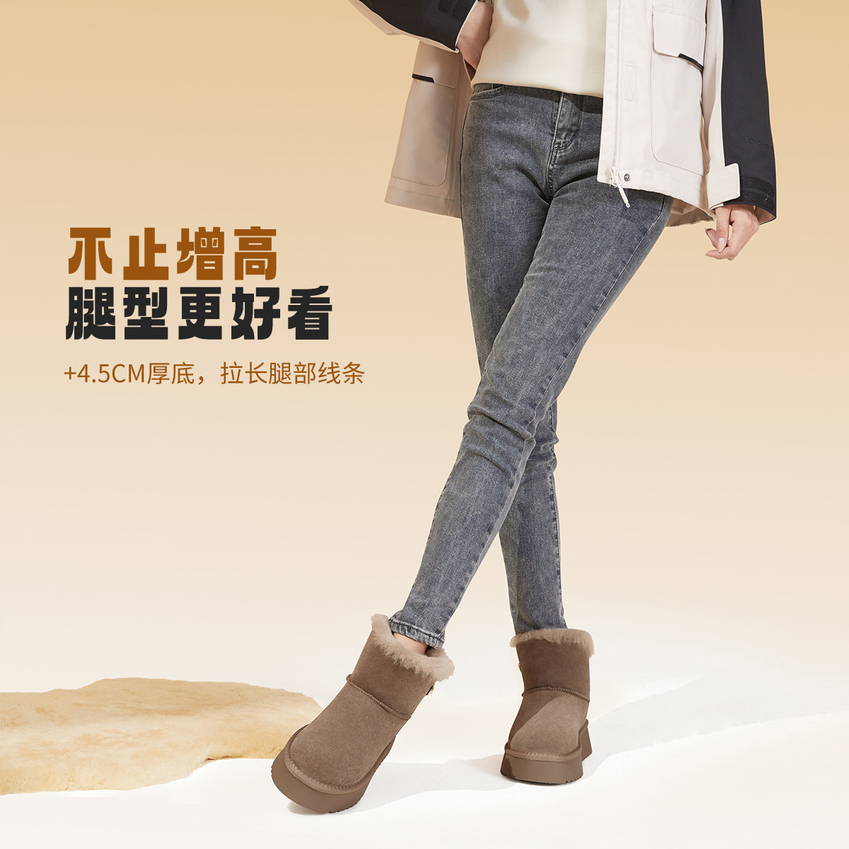 内增高~桑坡真皮厚底羊毛雪地靴女加绒保暖东北棉靴秋冬季短筒靴