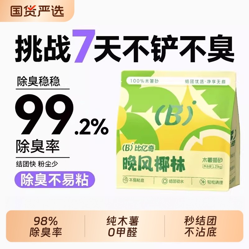 比亿奇纯木薯猫砂除臭去尿味无尘矿石混合木薯沙植物国货钠基豆腐