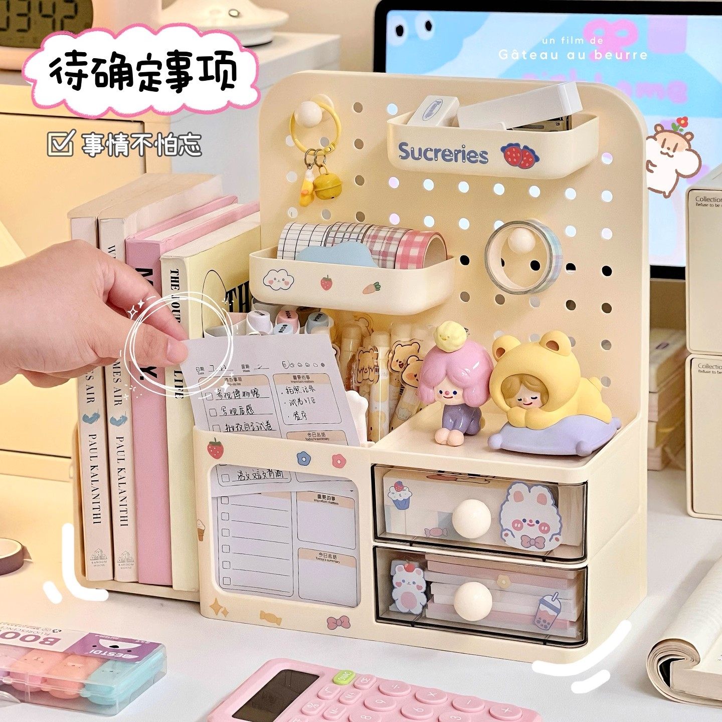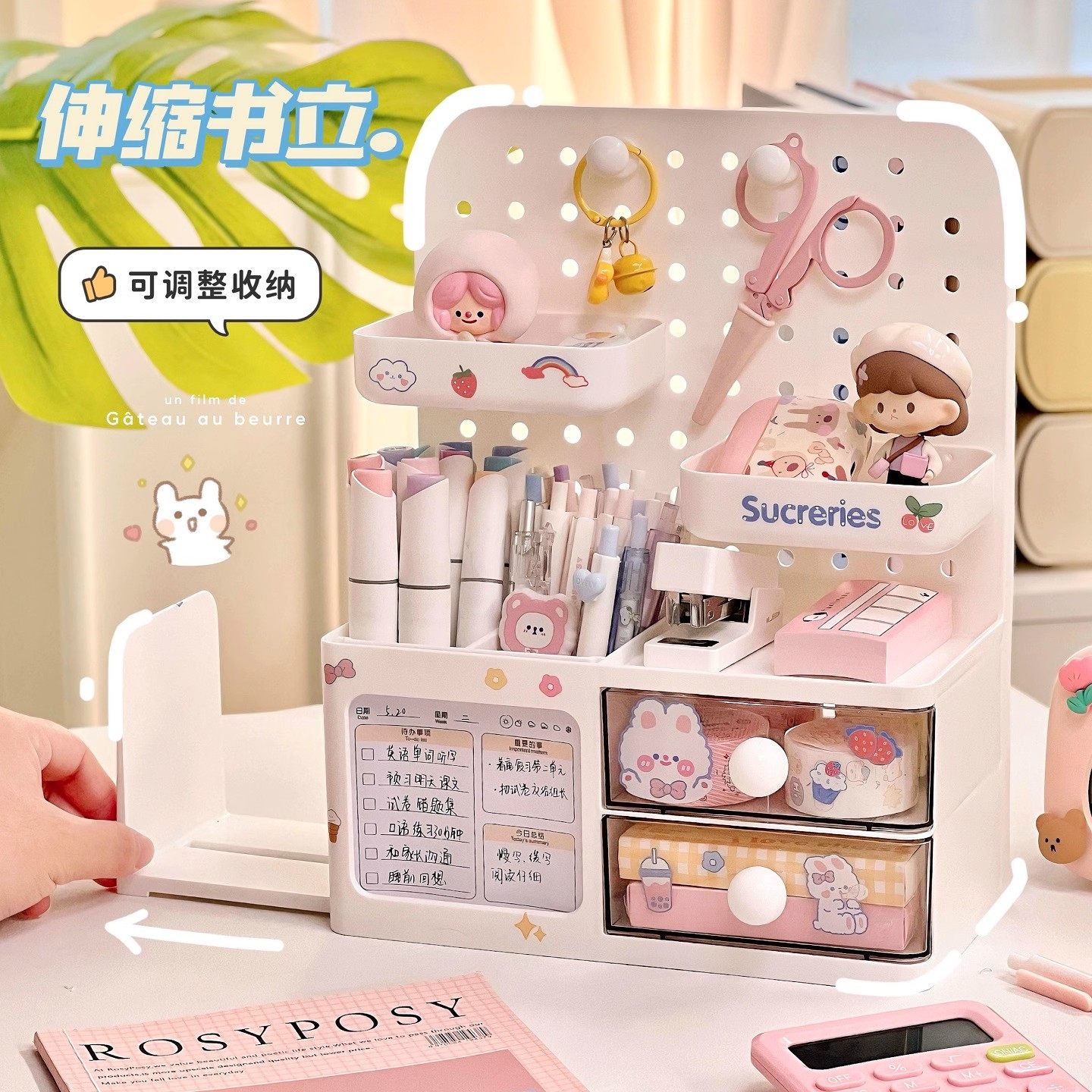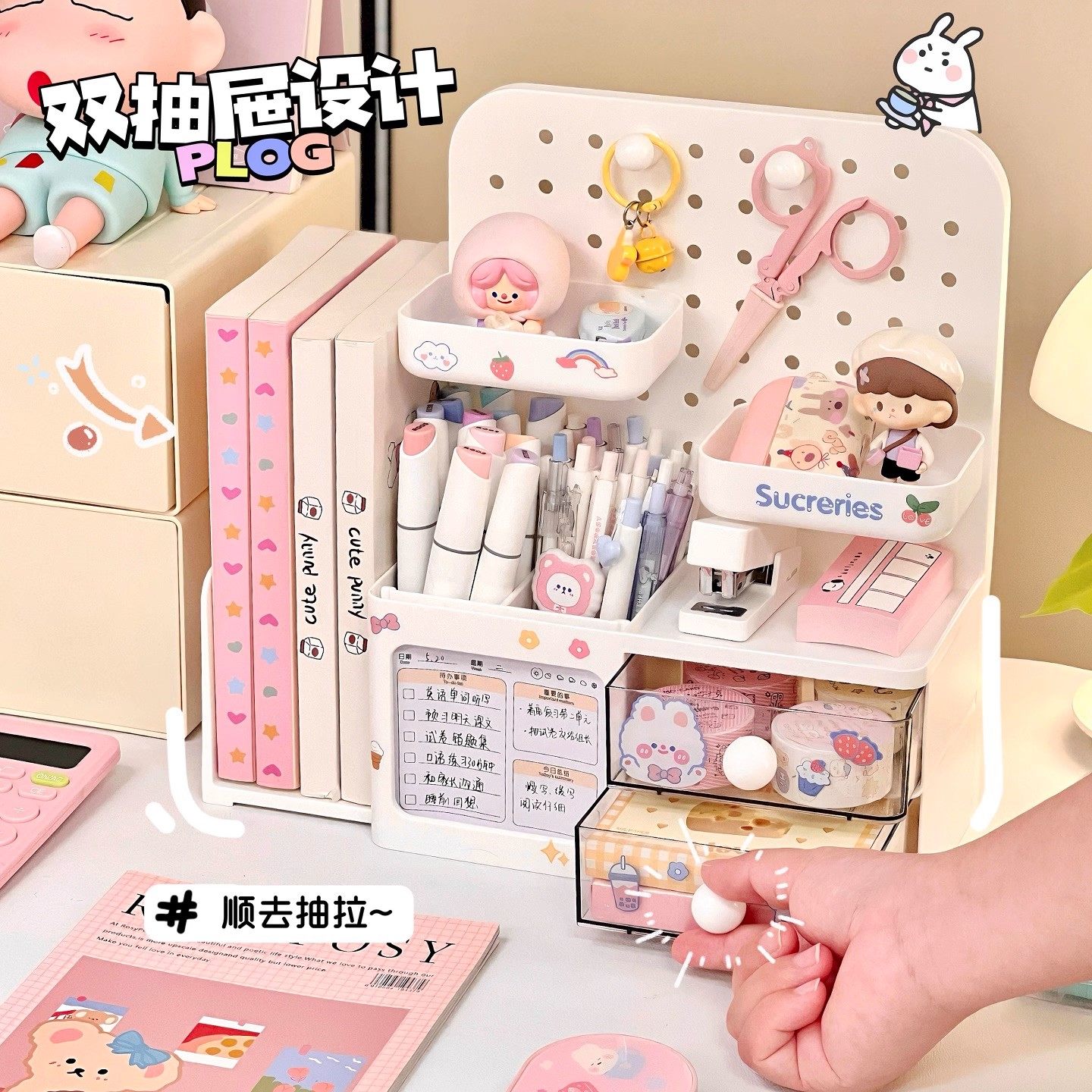 桌面多用途笔筒洞洞板收纳盒学生超大文具吧唧谷子展示架书房书柜置物架笔筒书立架儿童书桌小女孩文具置物架