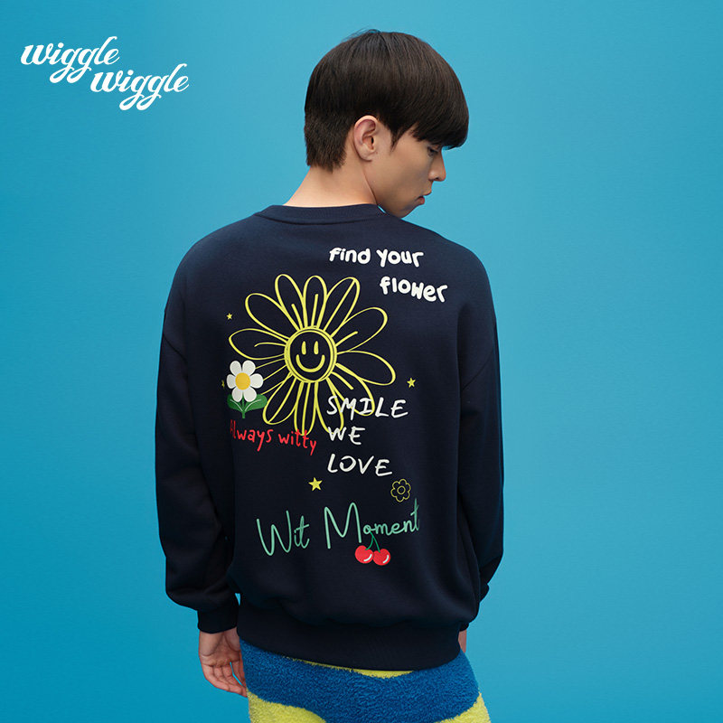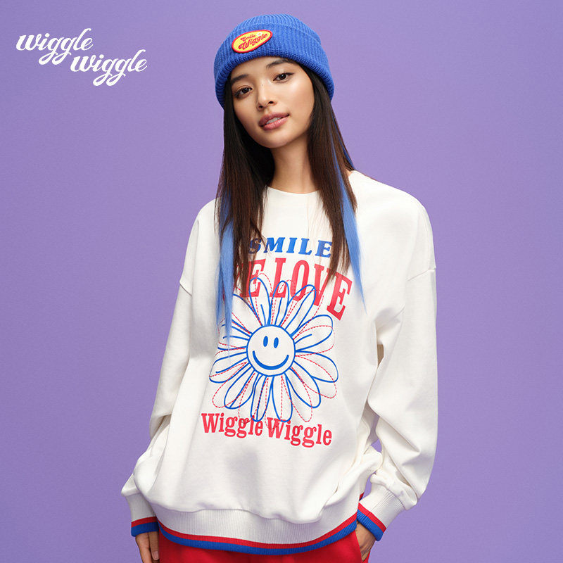 【限时75折】wigglewiggle26年春秋新款时尚后背经典笑脸花卫衣
