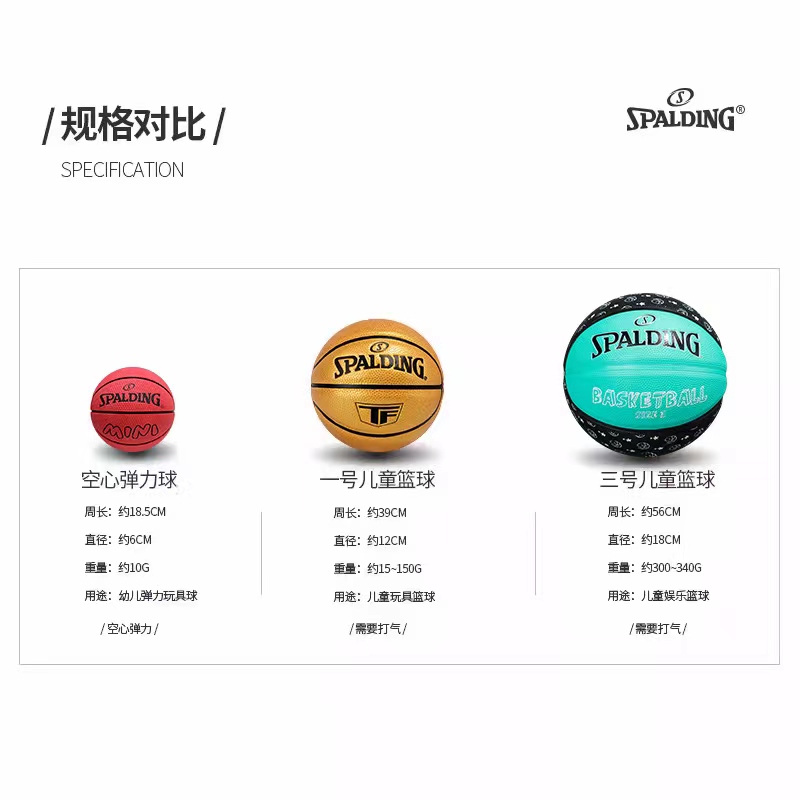 斯伯丁高弹力迷你3号五小篮球玩具礼物幼儿园儿童专用男生女5号球