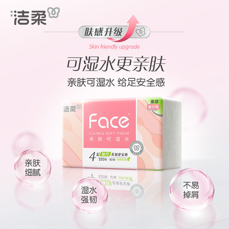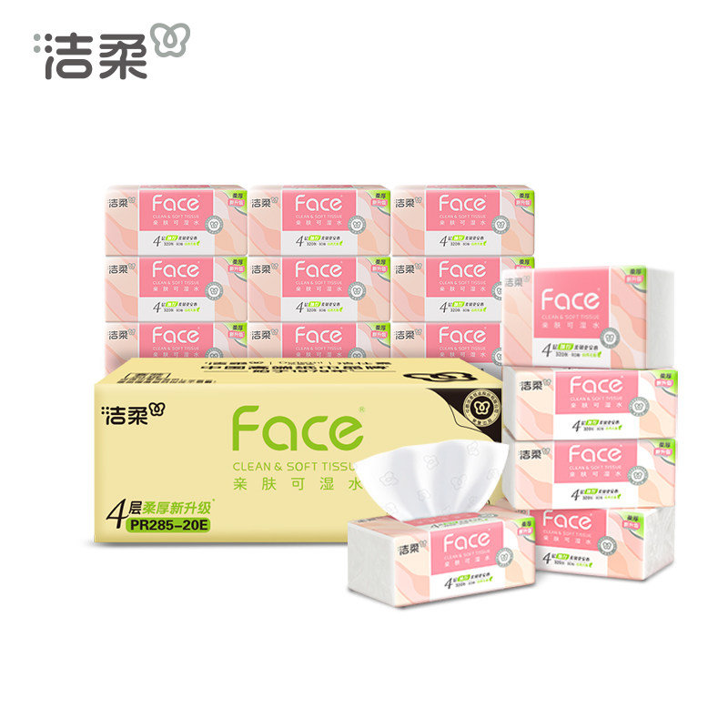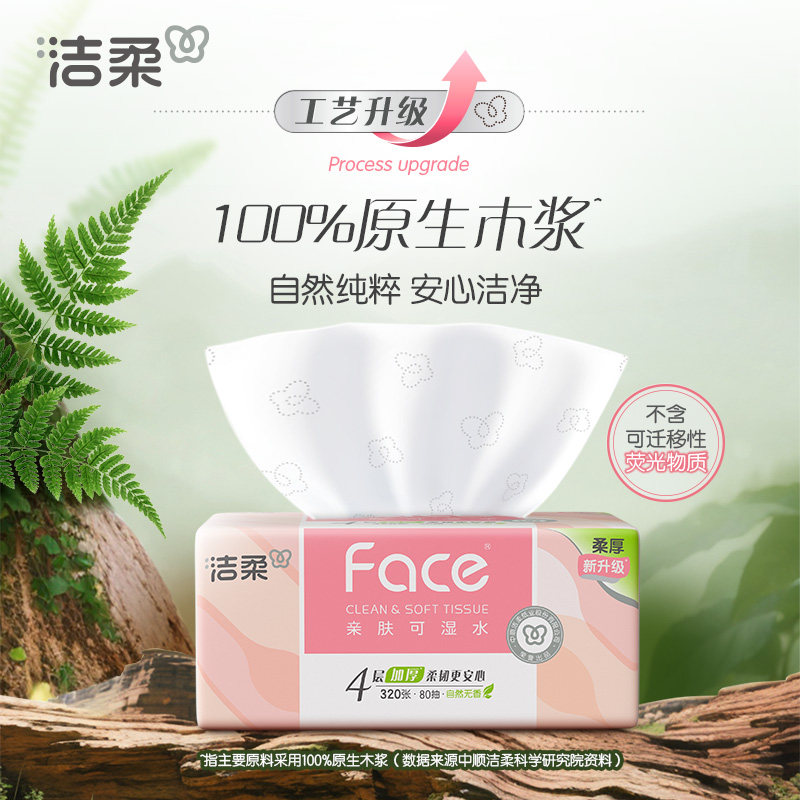 洁柔粉face抽纸4层80抽20包整箱装面巾纸餐巾纸母婴适用卫生纸巾