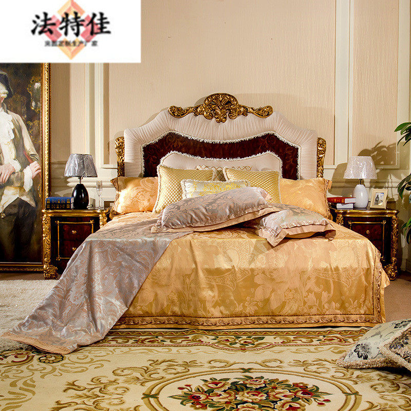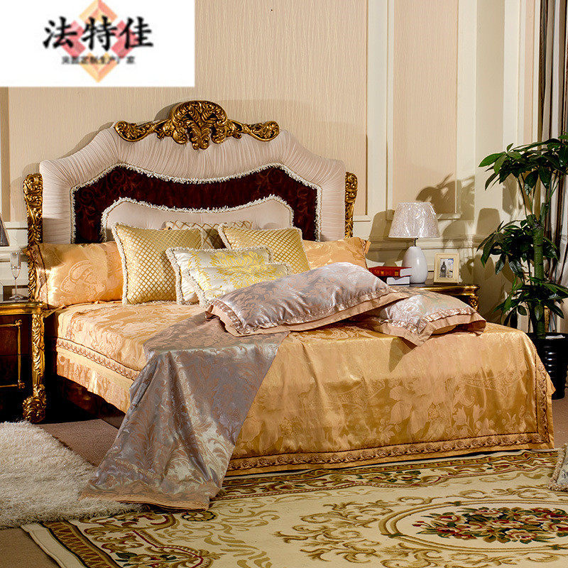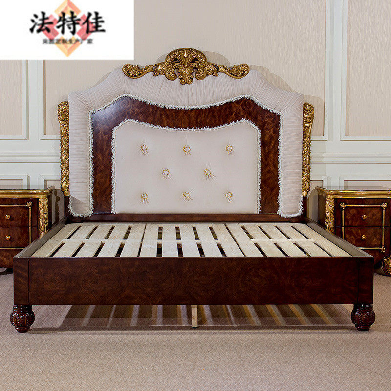 欧式实木雕花床别墅卧室具奢华布艺1.51.8米双人床手工描金