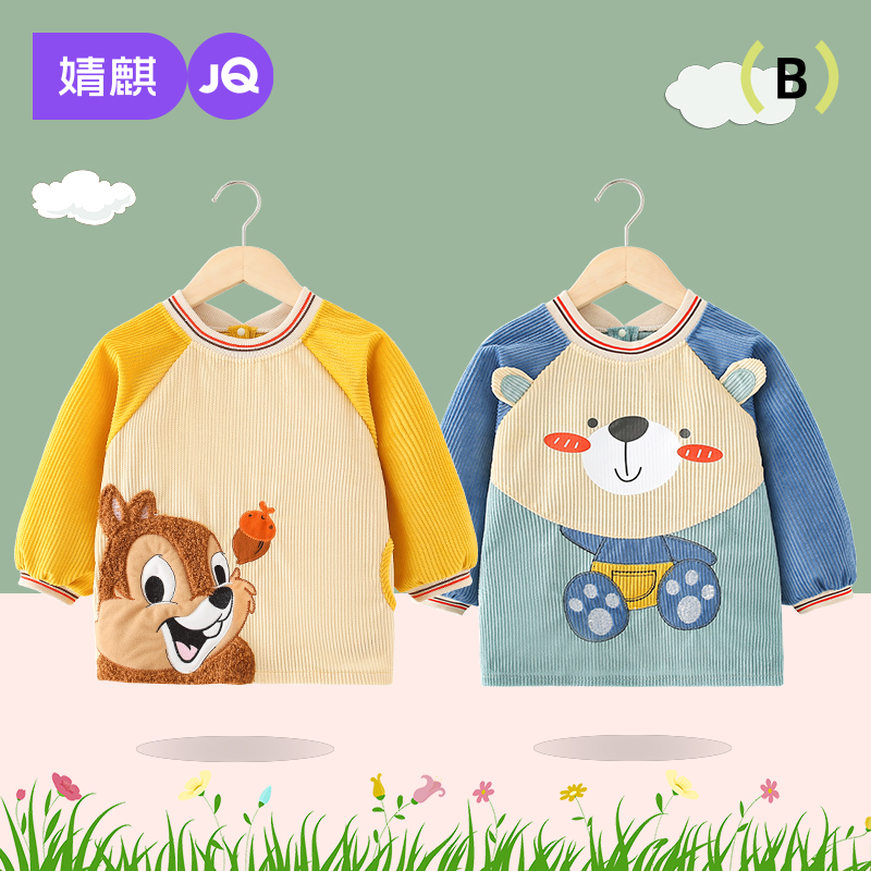 婧麒宝宝罩衣新款可爱超萌图案防护衣防水防脏围吃饭外出反穿围兜