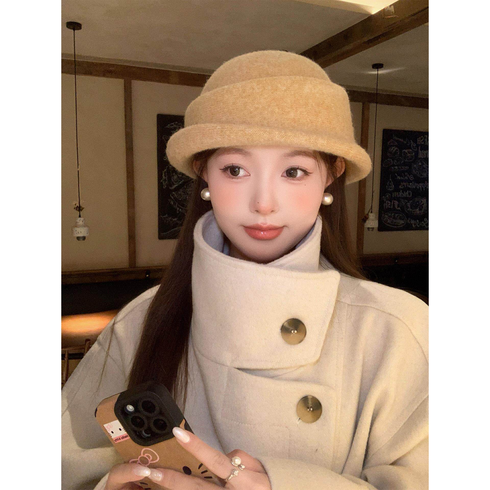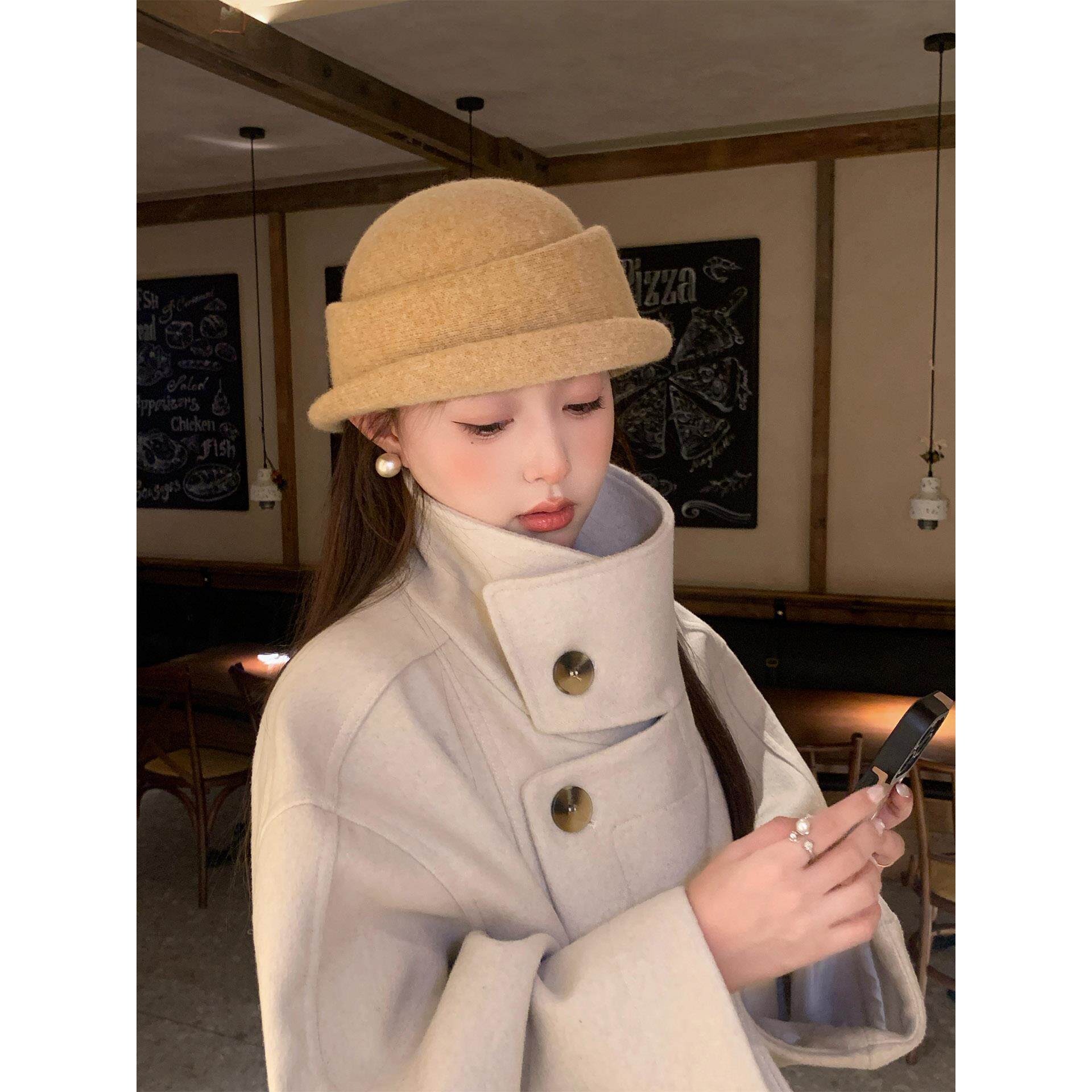 赫本风优雅毛呢礼帽女秋冬气质高级感针织渔夫帽保暖百搭千金帽子