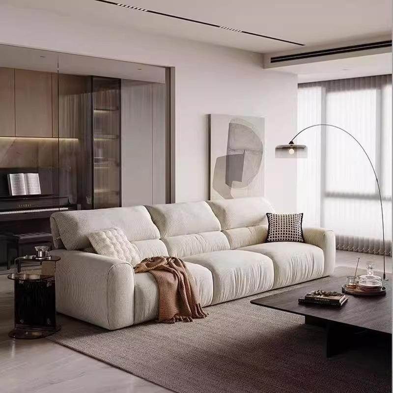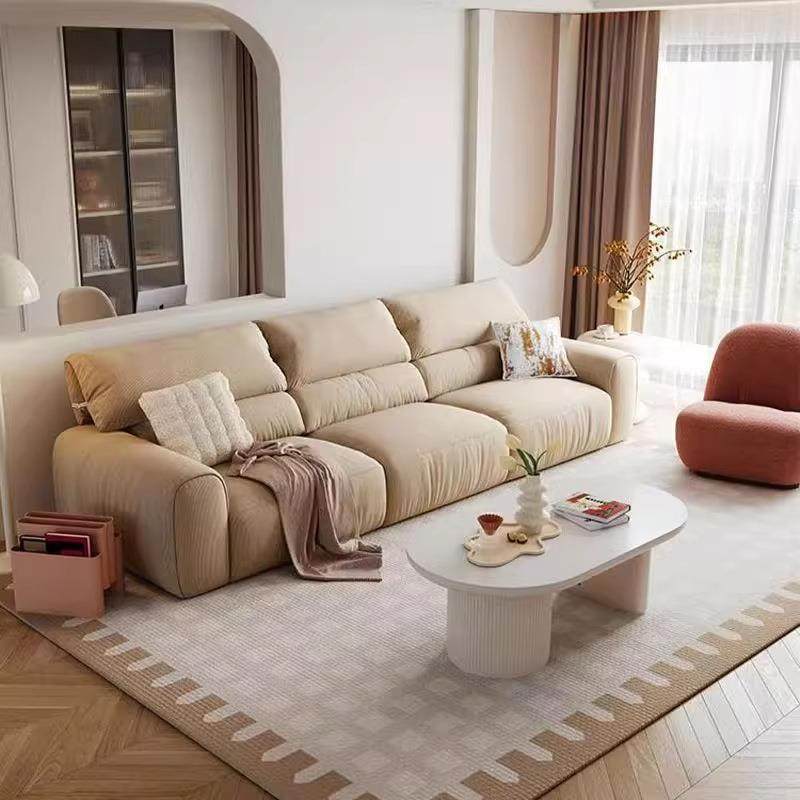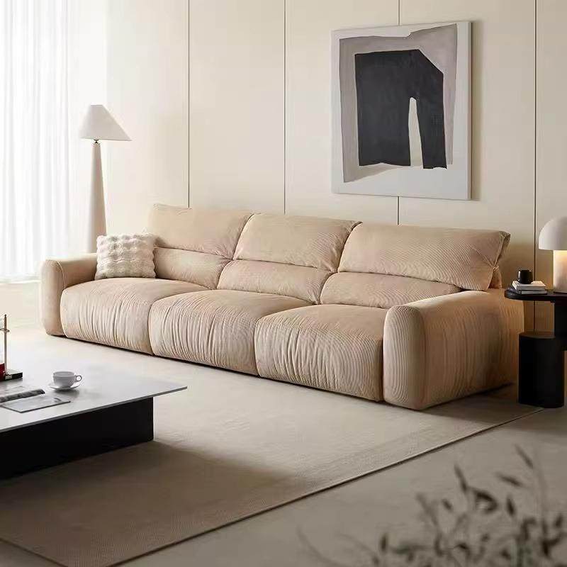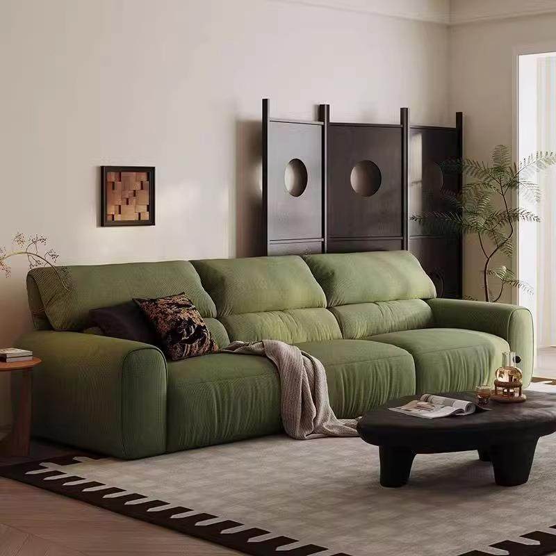 网红直排猫抓布灯芯绒布艺复古绿色沙发法式实木沙发小户型奶油风