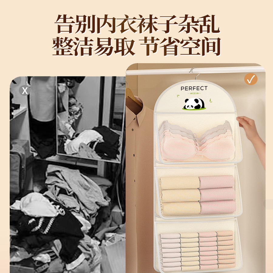内衣收纳挂袋内裤收纳神器悬挂式学生宿舍门后网兜家用衣柜收纳袋