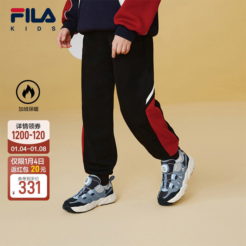 FILA斐乐儿童童装长裤2025年冬季新款男童中大童休闲宽松加绒裤子