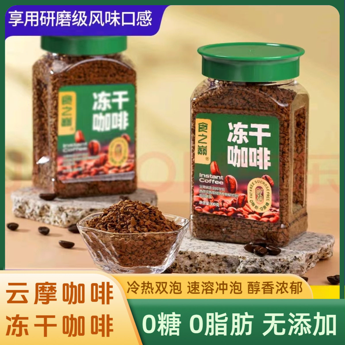 云南农科院冻干咖啡美式冷萃速溶正品不酸冻干粉400次纯黑咖啡粉