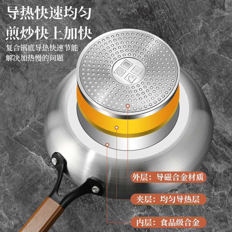 华际达平底锅316不锈钢不粘锅家用牛排煎锅炒菜炒锅无涂层电磁炉