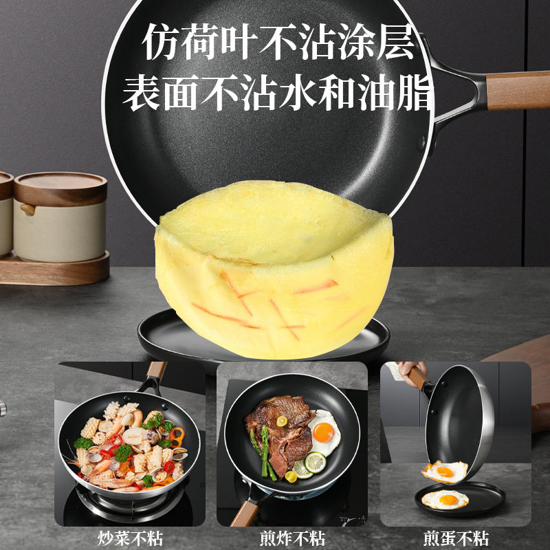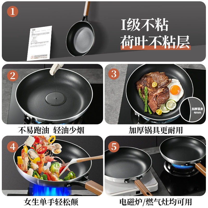 钛红芯控温平底锅不粘锅家用无涂层炒菜煎蛋牛排电磁炉专用深煎锅