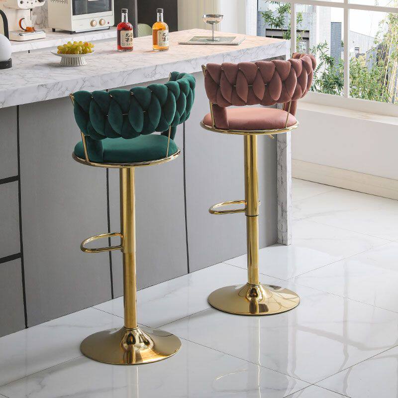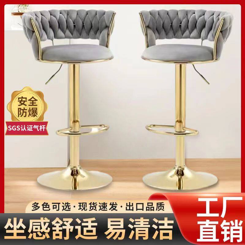 2025轻奢吧台椅子可升降旋转家用靠背高脚凳简约创意酒吧椅网红编织椅
