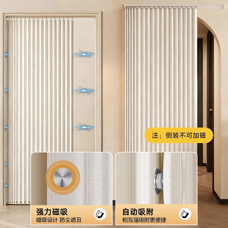 隐形免打孔折叠门帘家用厨房卧室加厚遮挡布帘空调挡风帘子隔断帘