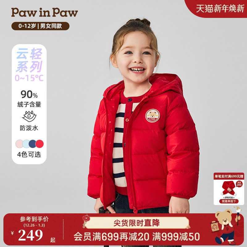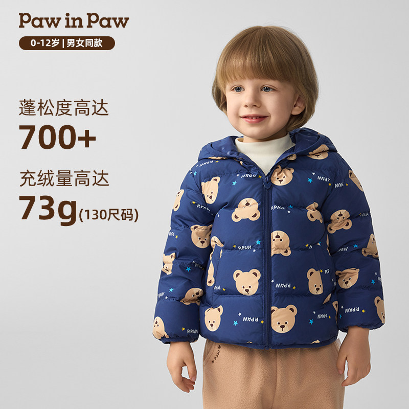 PawinPaw卡通小熊童装25年秋冬新款男女宝宝轻羽绒连帽羽绒服马甲